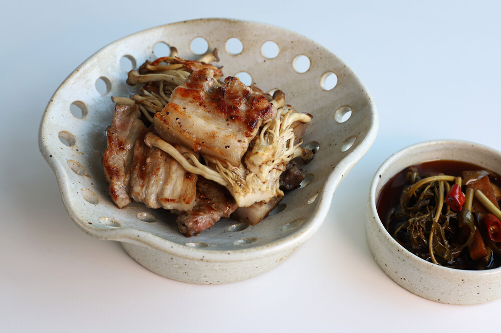 삼겹살 담으면 기름이 밑으로 싹 빠져요