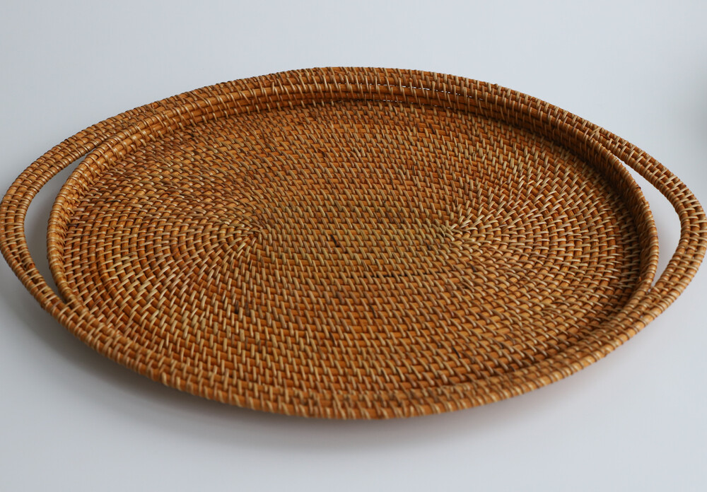 그 중간의 따뜻함느낌이 물씬나는 완성도 높은 라탄 손잡이 트레이에요