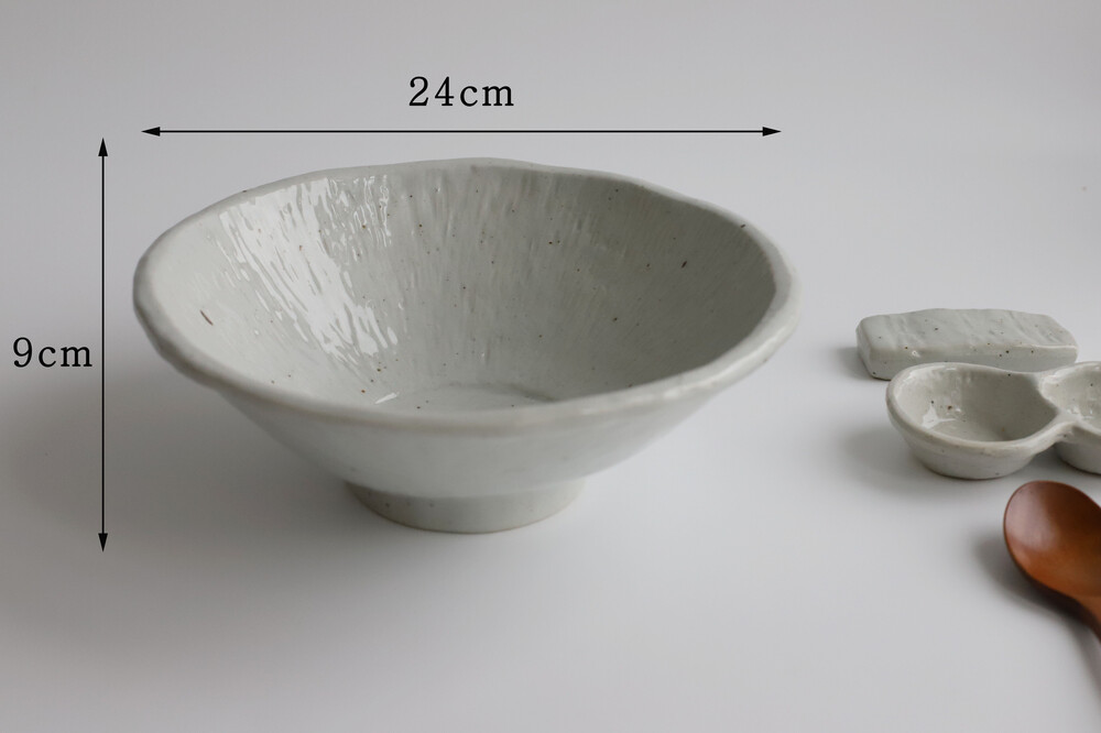 면기는 넉넉한사이즈입니다. 많이 깊지 않아서 비벼먹기 참 좋은 볼이에요. 샐러드를 담아도 좋고요