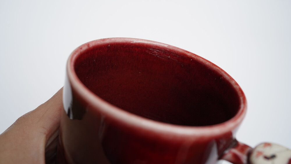 다른곳은 모두 정상인데 컵 안쪽에 돌가루가 작게 박혀서 사포로 부드럽게 다듬다 생긴 기스가 보여집니다.