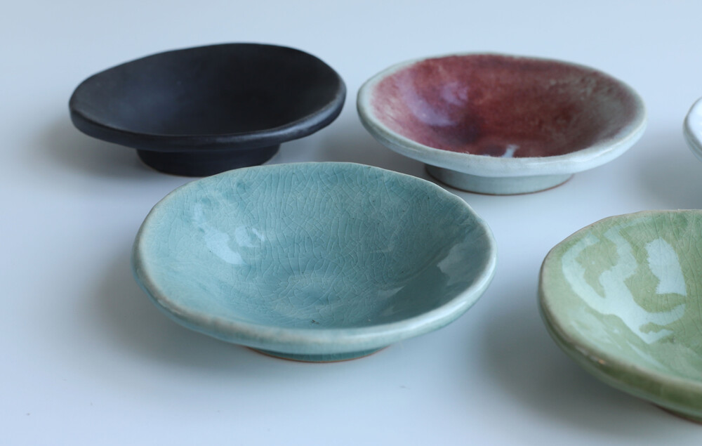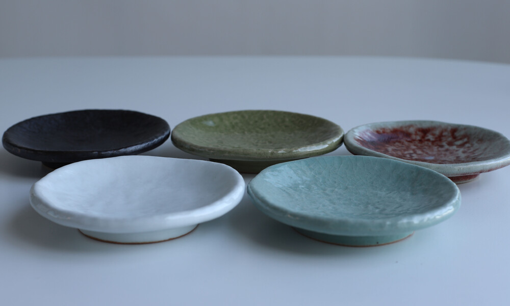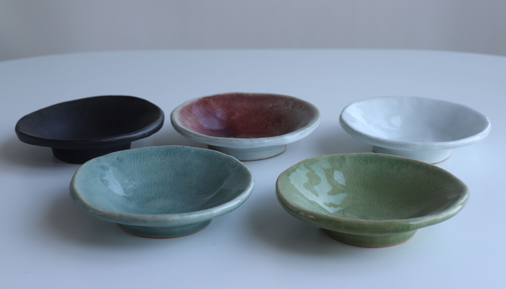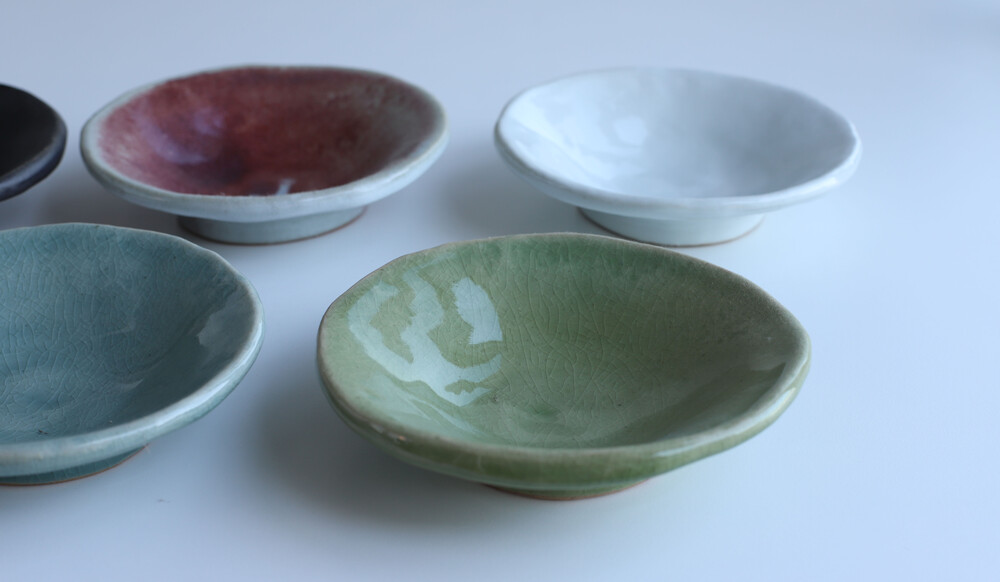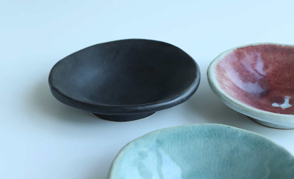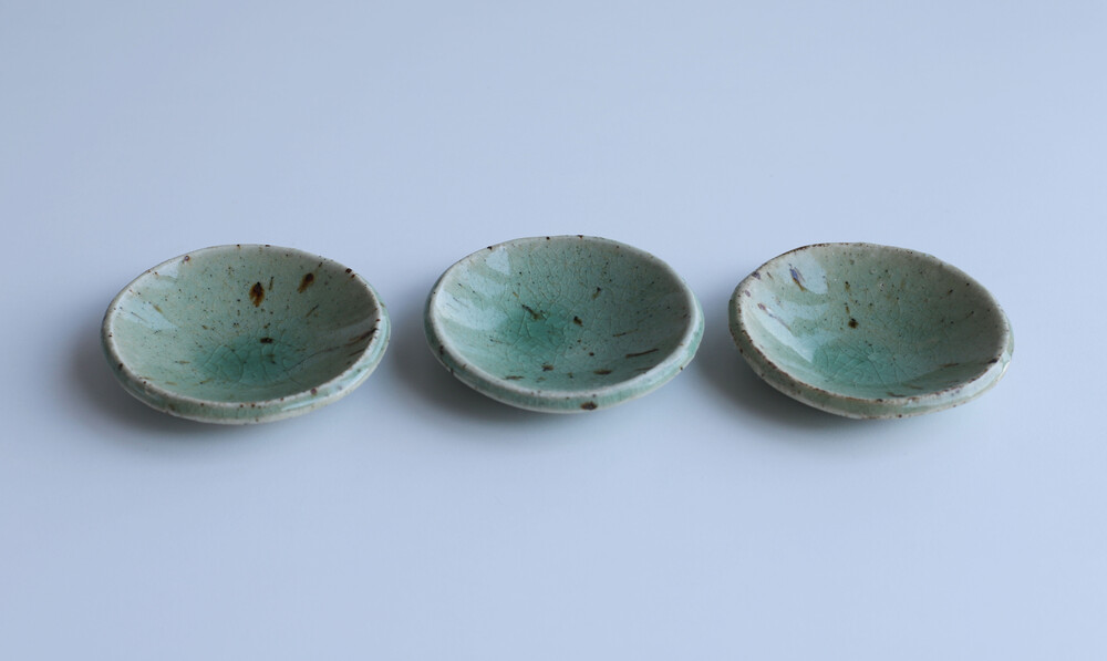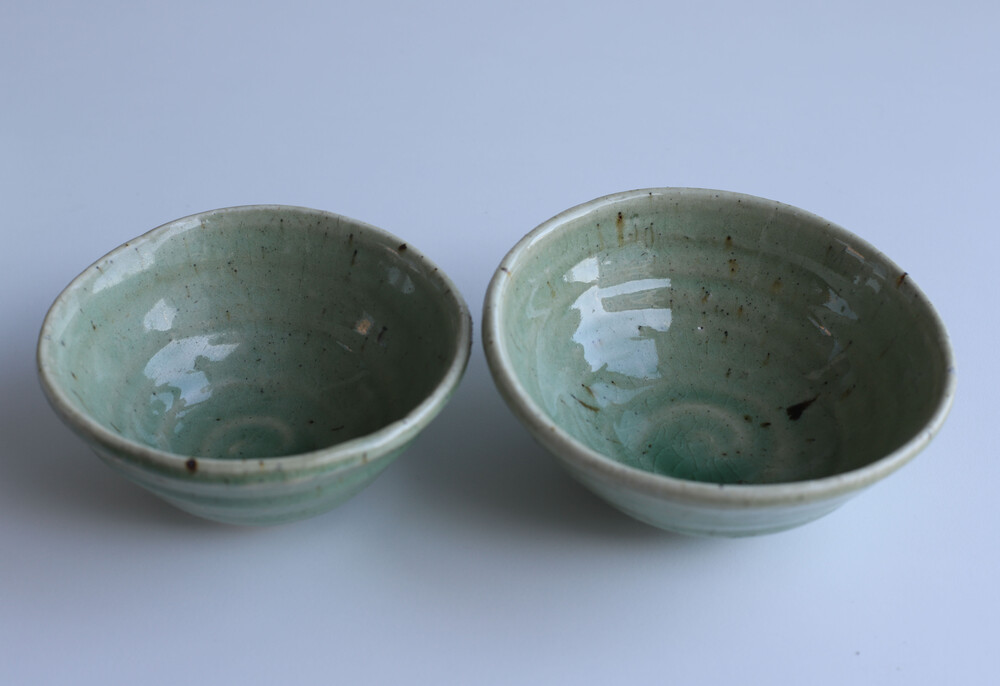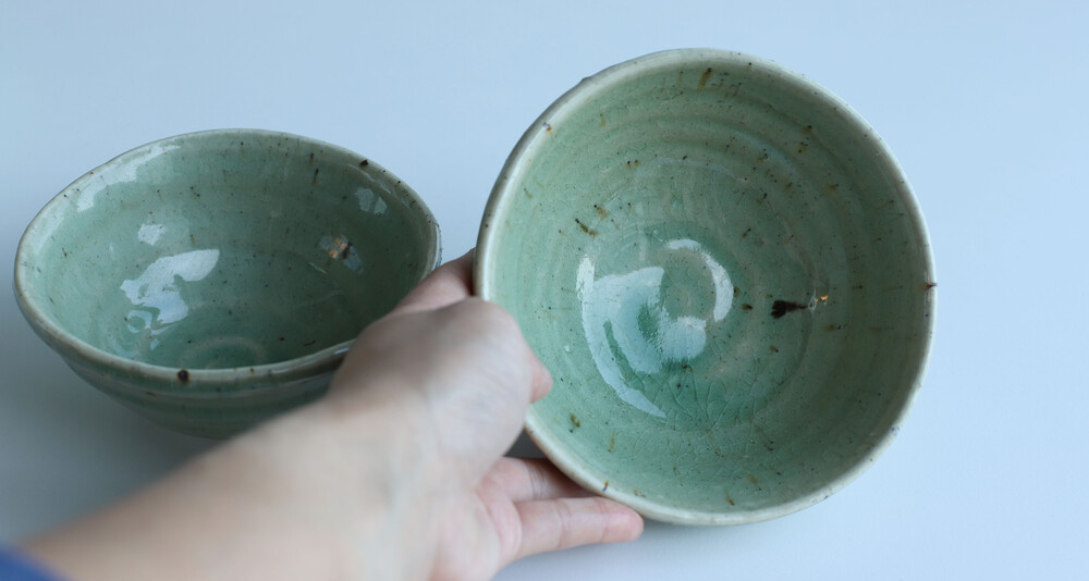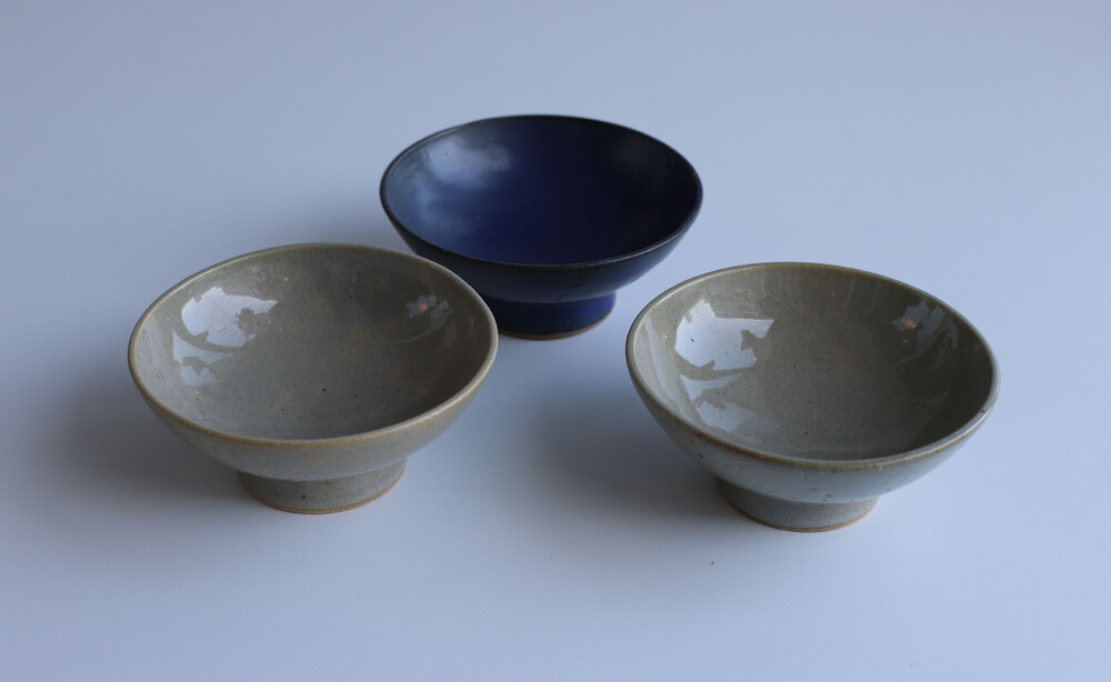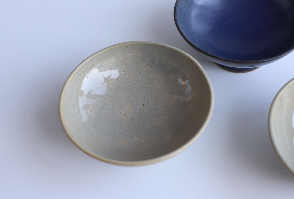 회색은 유광이 많이 돌며 유약숨구멍(바늘구멍)이 보입니다.