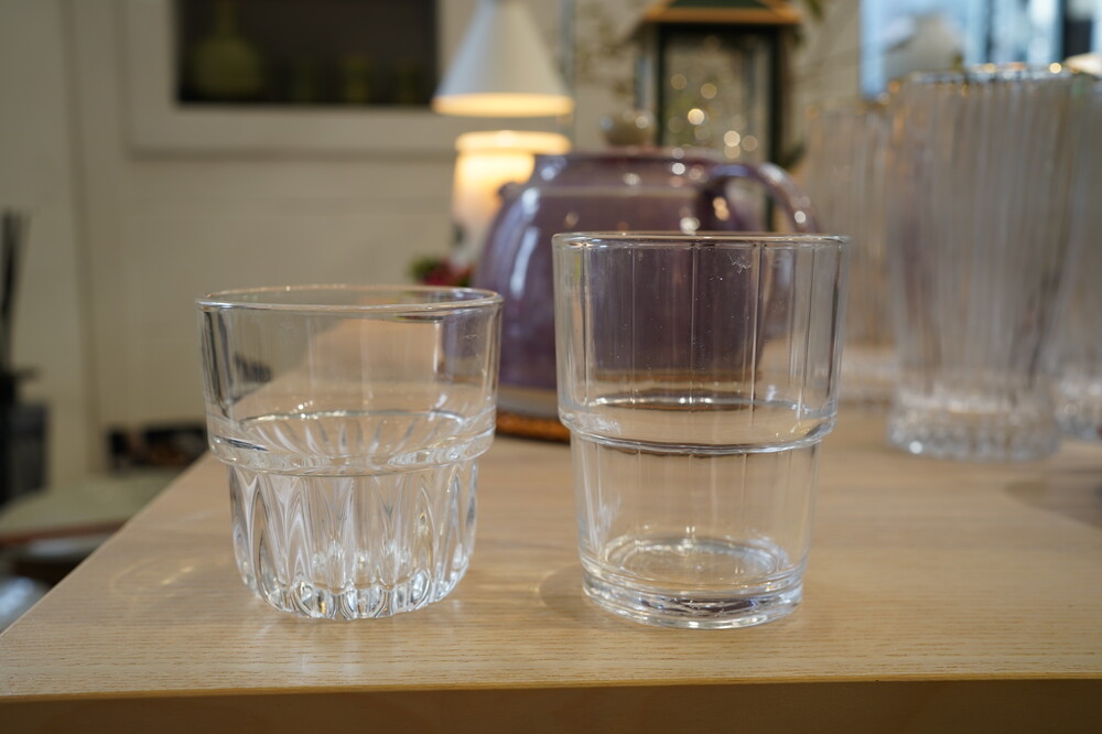 둘다 한손에 쏙 들어오는 물컵입니다.