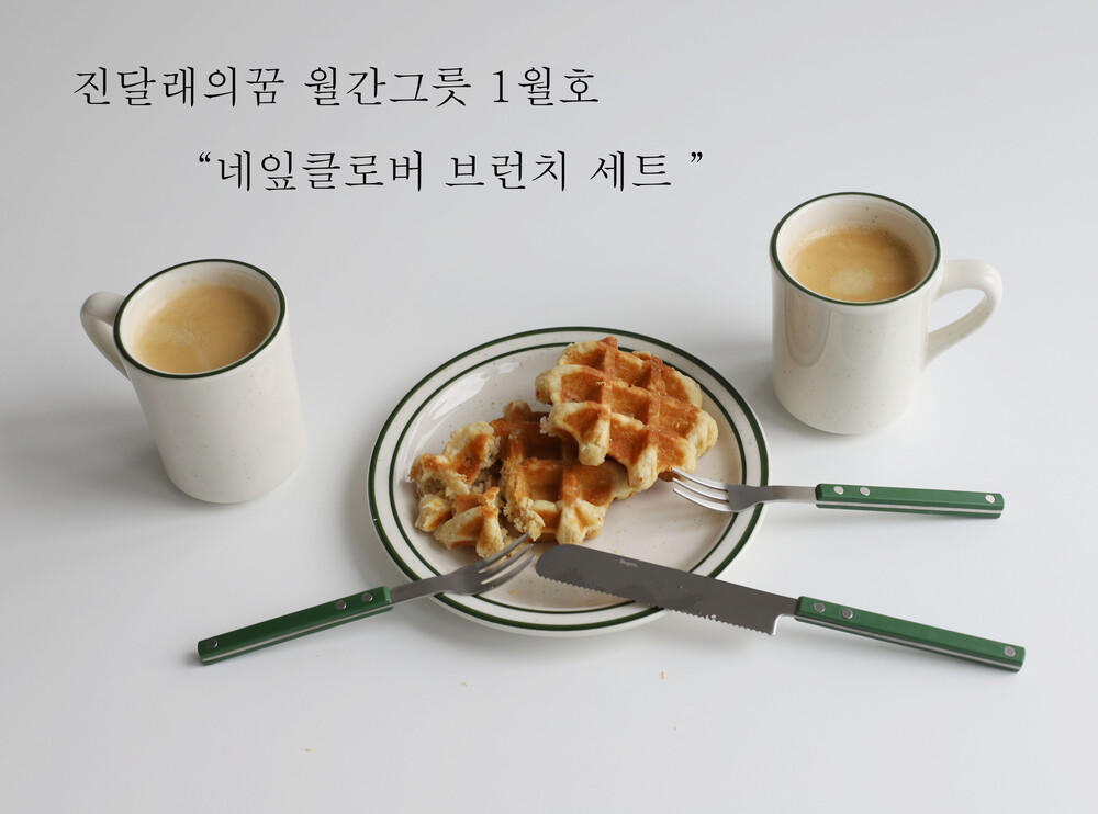 행운이 고객님들께 전해지길 바라면서 . 1월월간그릇은 초록초록한 네잎클로바 브런치세트로 찾아왔습니다.