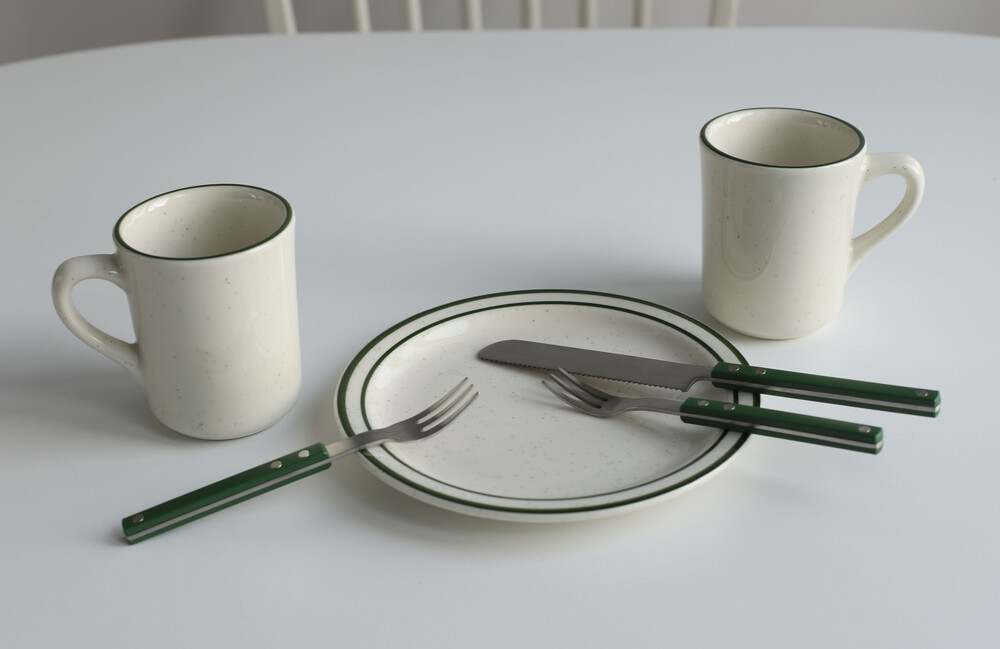 크림색에 초록 테두리, 초록점이 너무나 매력적인 그릇이지요?