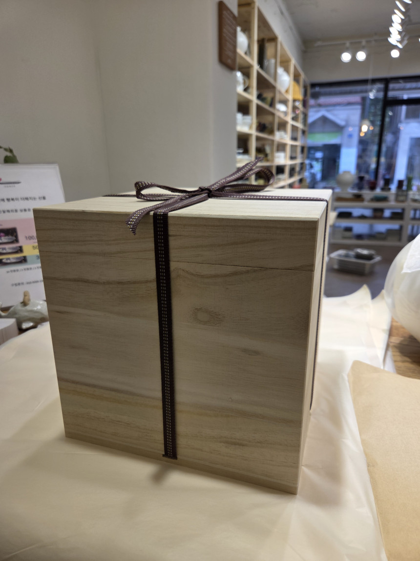 주문 제작되는 오동나무박스로 습기 조절이 좋아 고급스러워 선물용으로 많이 쓰입니다.