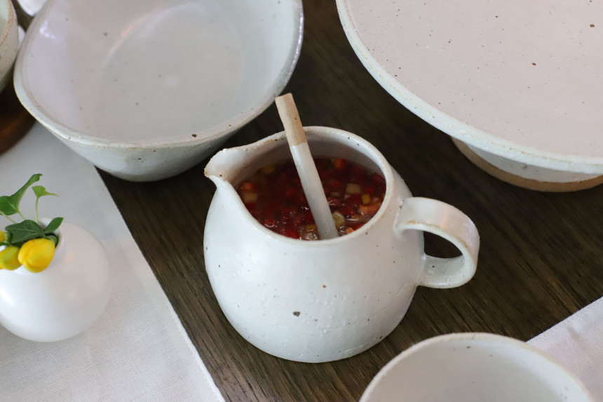 오트밀도자기는 밝은 오트밀색상에 흙 속의 철분점이 자연스럽게 녹아든 색감입니다.