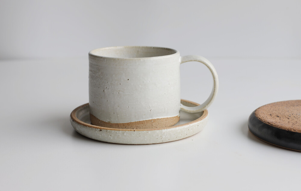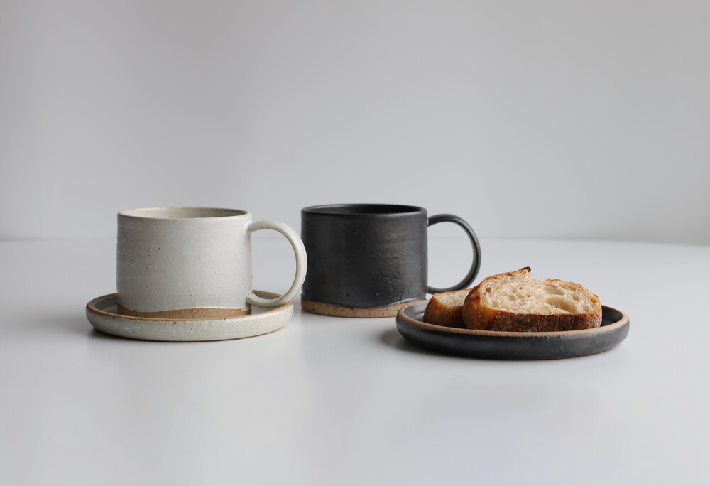 넉넉한 용량의 머그와 접시입니다.