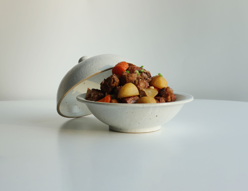 진달래의꿈 오트밀도자기 핸드메이드 갈비찜그릇 세트(뚜껑+볼)