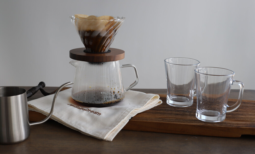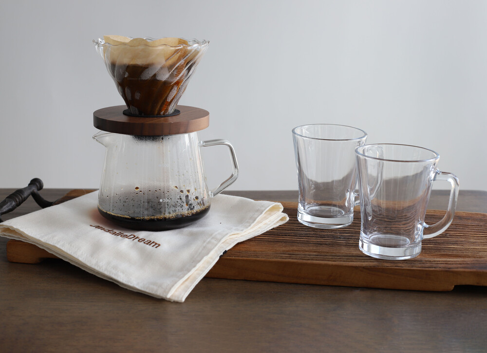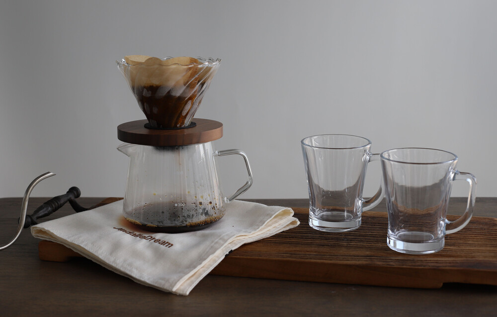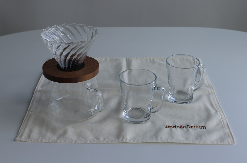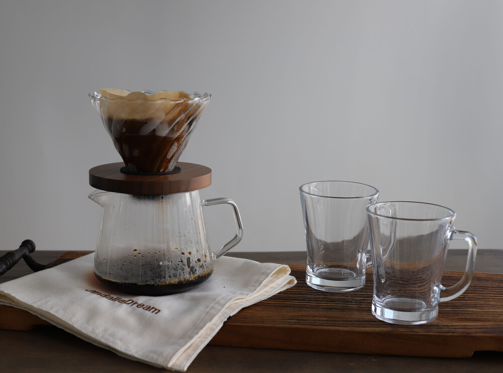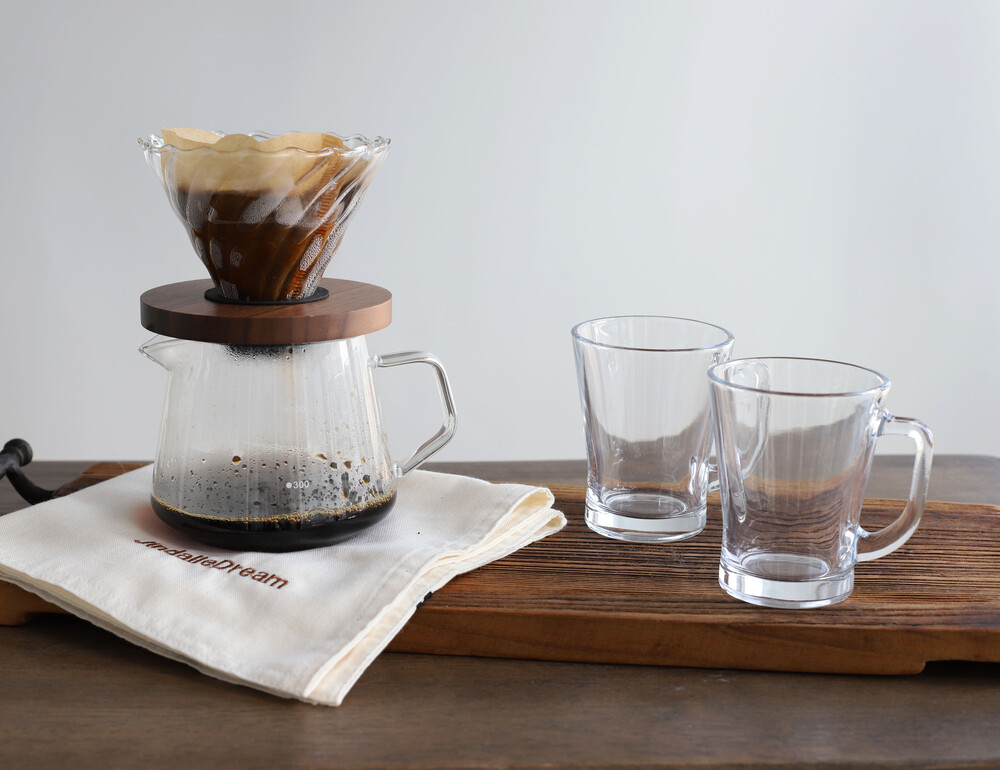 튼튼하고 내구성이 좋은 내열유리서버와 단단하고 고급스러운 월넛, 호두나무로 제작된 드리퍼와 유리컵까지 구성된
