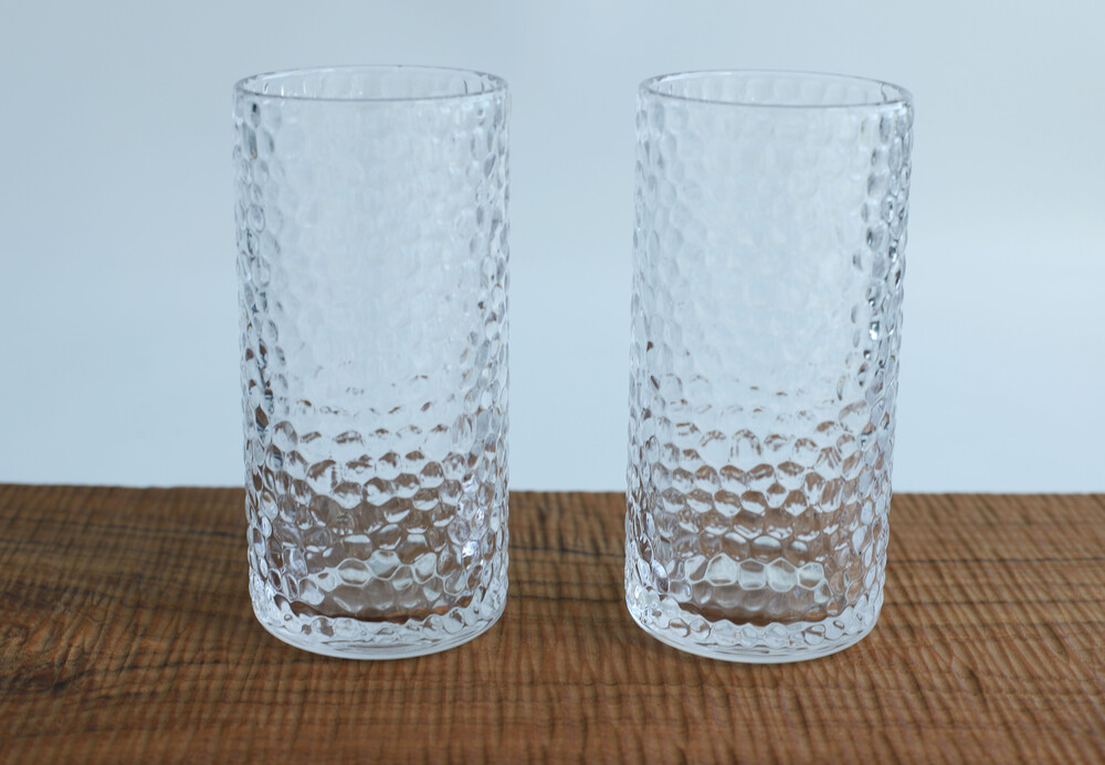 얼음을 동동 띄운것같은 물방울 모양의 일자 유리컵