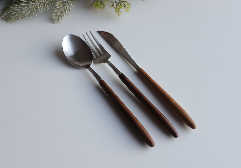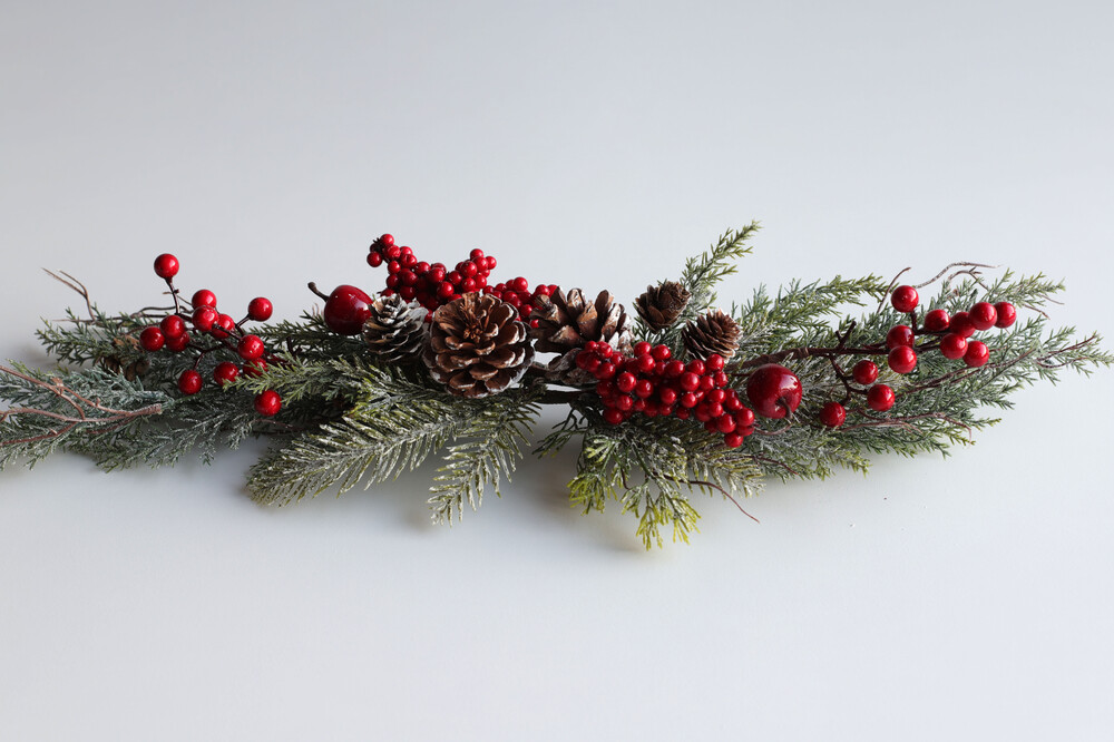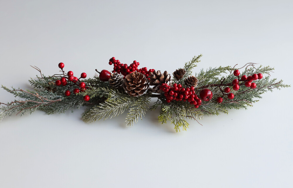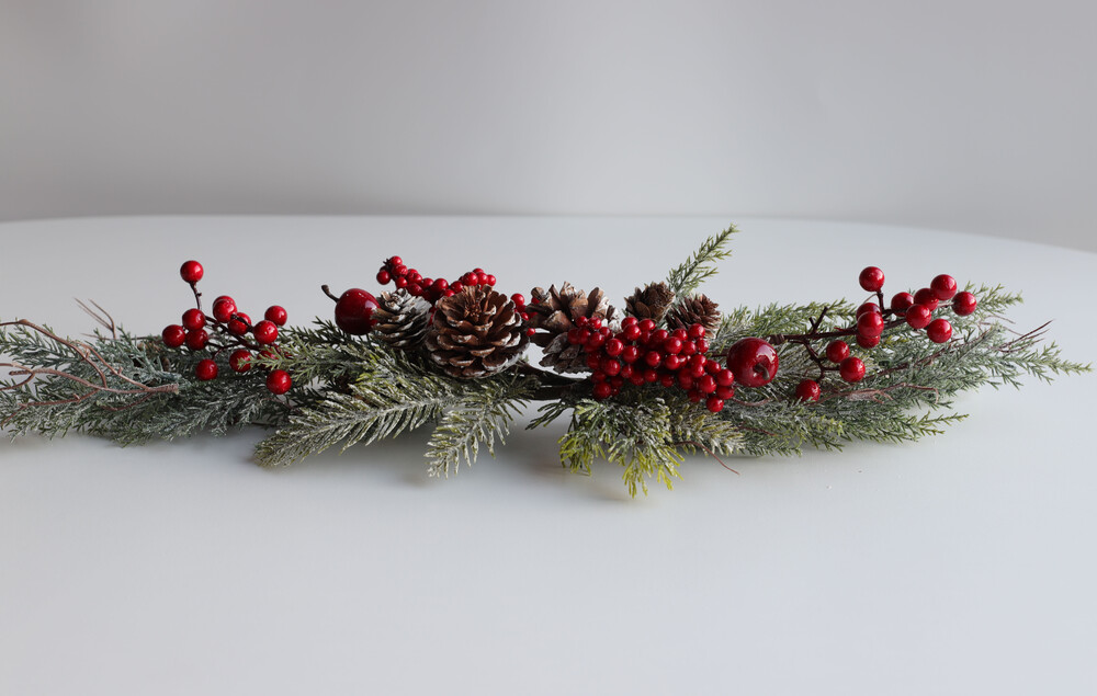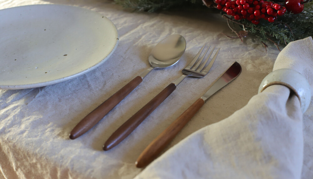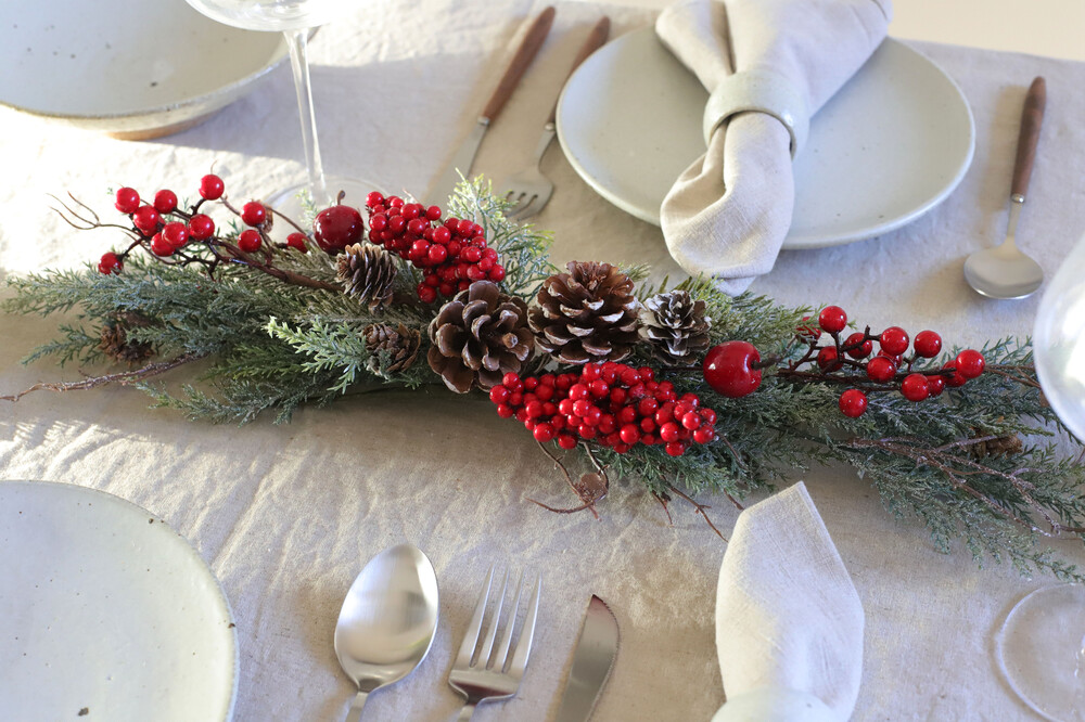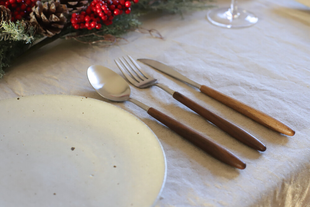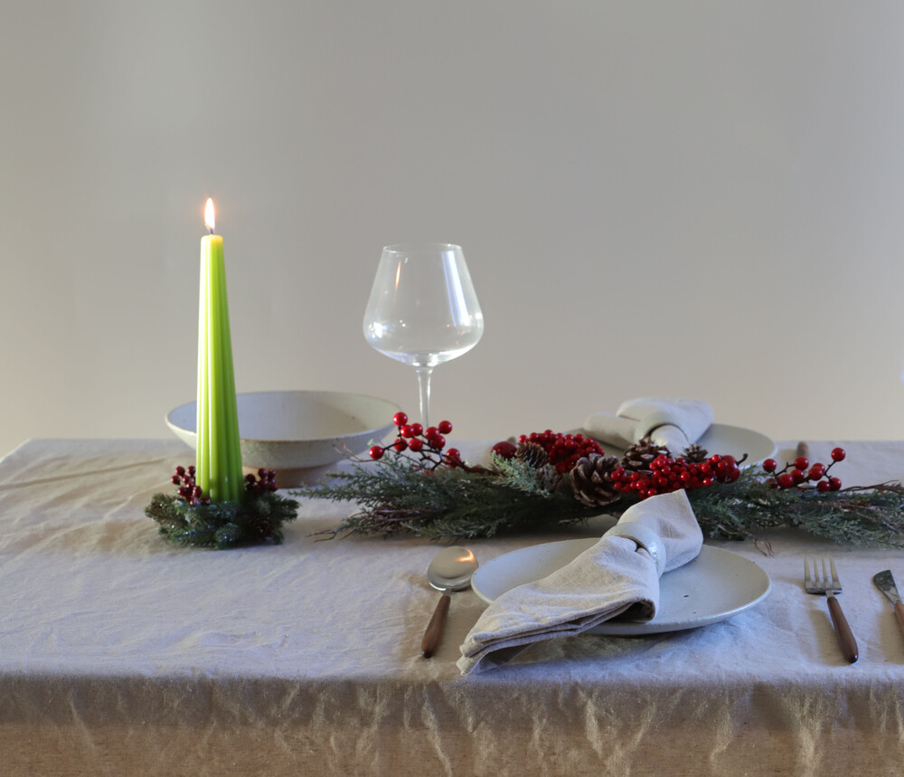 차분한 겨울 분위기에 어울리는 와인잔, 커트러리, 그리고 핸드메이드 센터피스를 더해