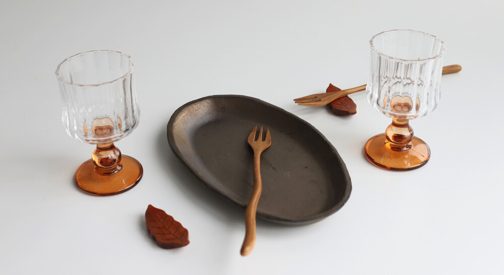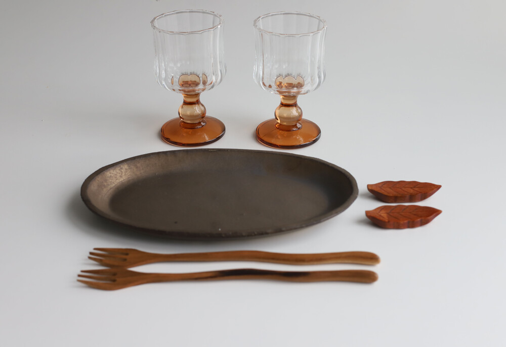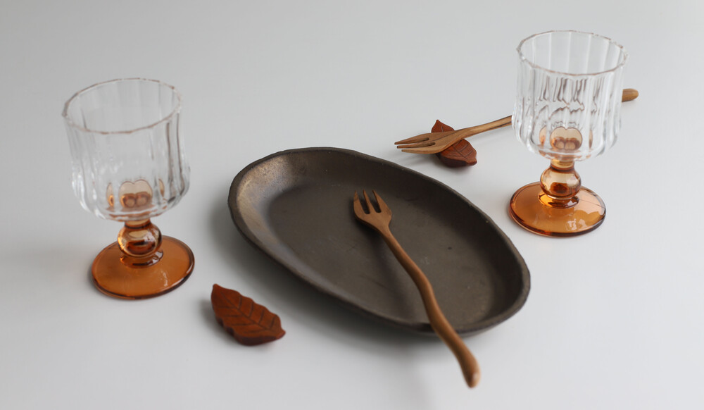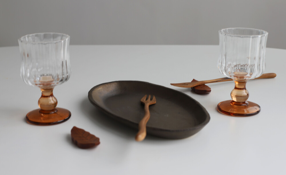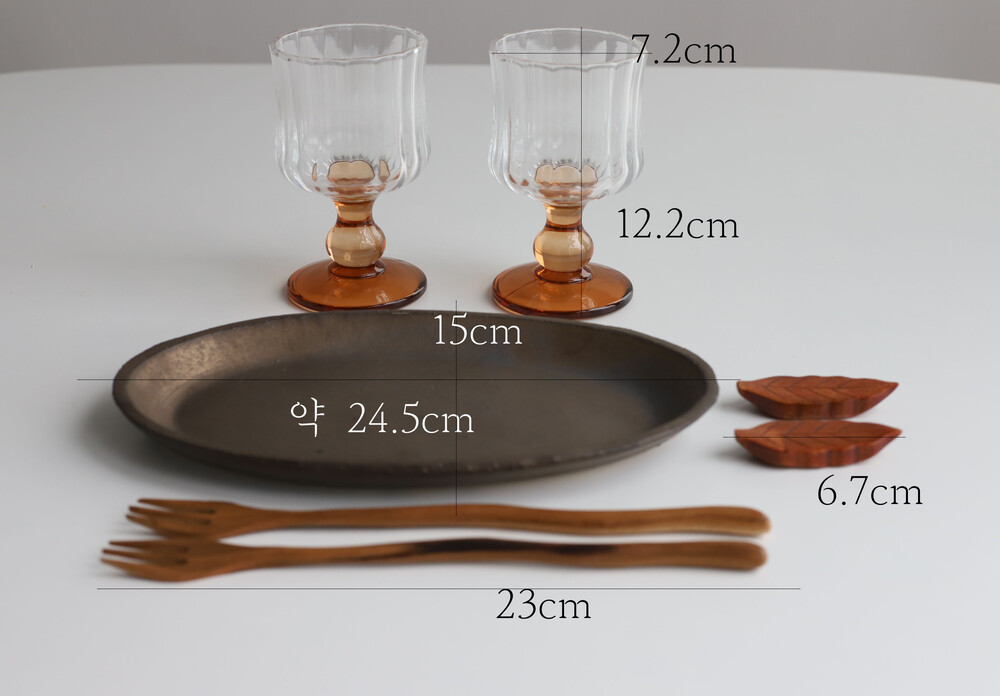 구성 : 100%수공예 타원그릇1P,고블렛잔2P,수공예 원목포크2P,우드받침대2P