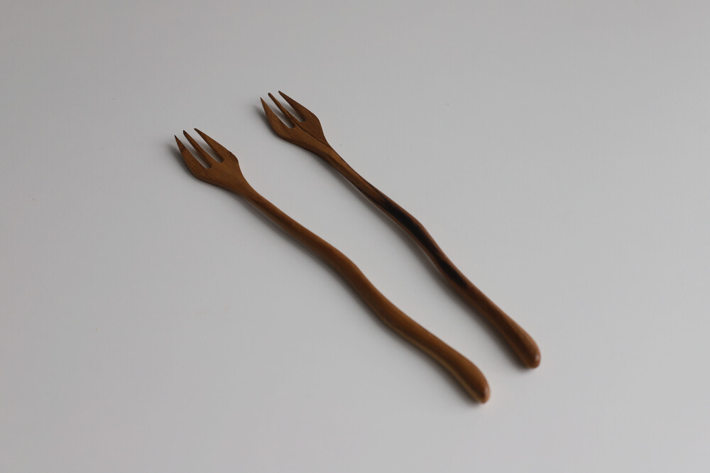 나무를 그로 깎아 만든 100% 수공예 포크입니다.