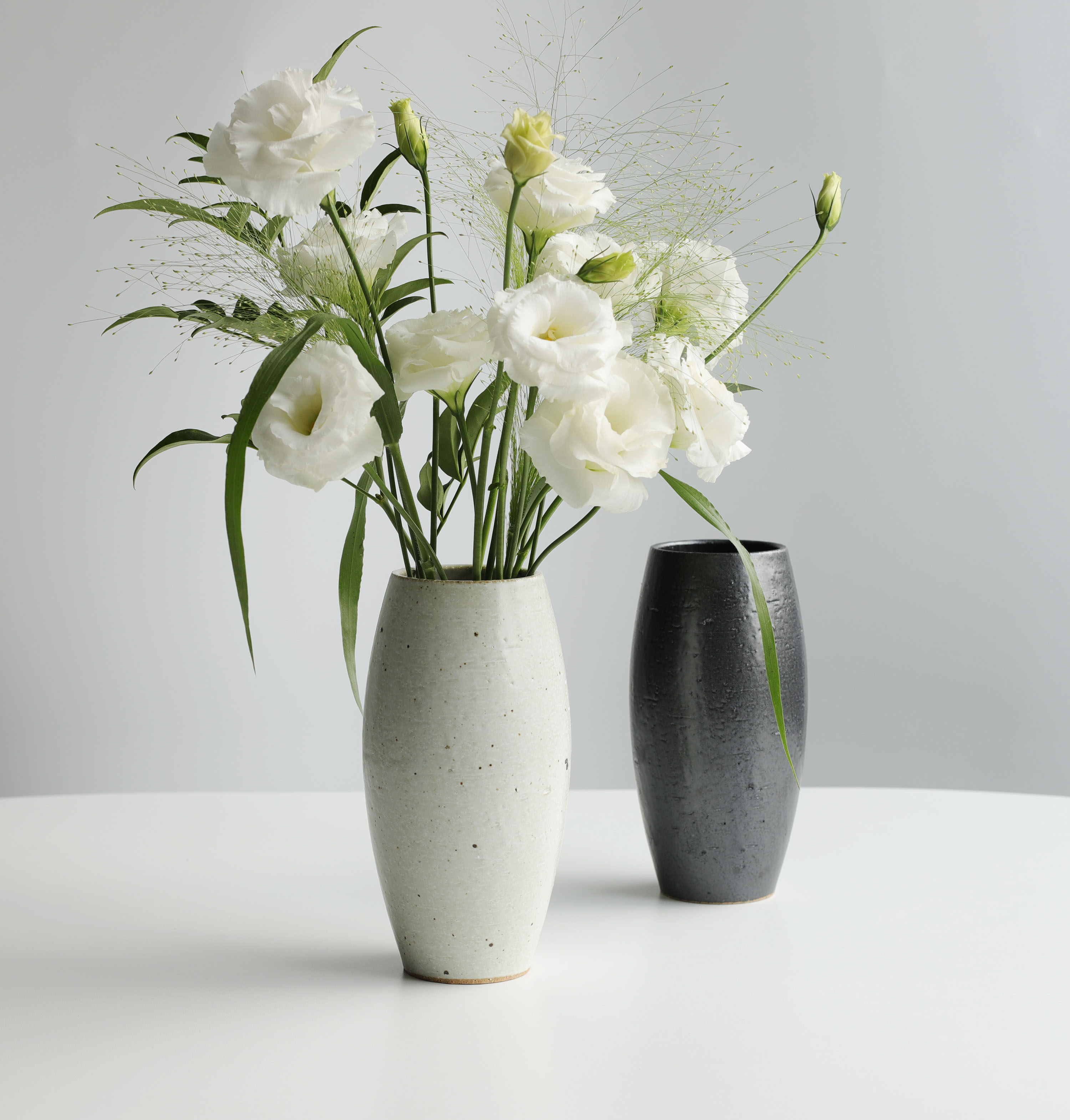 꽃을 꽂았을 때 가장 예뻐보이는 입구사이즈를 줄여 항아리 형태의 화병이에요.