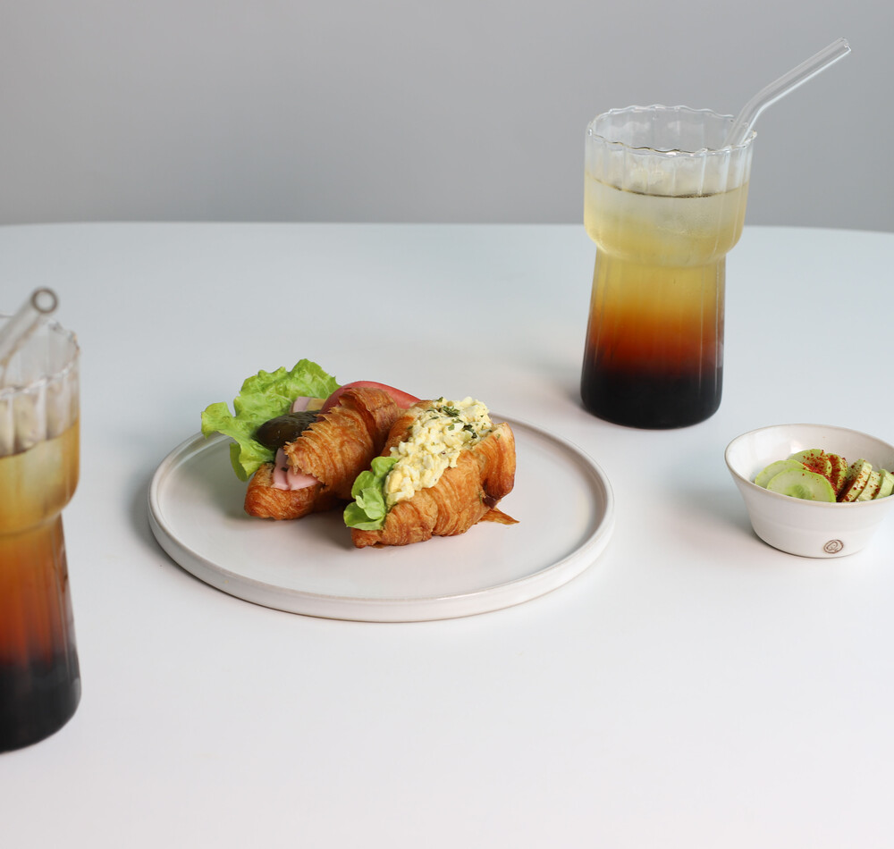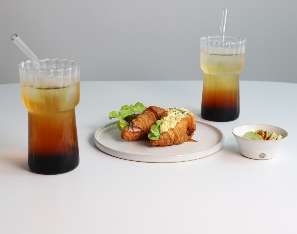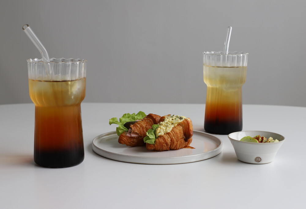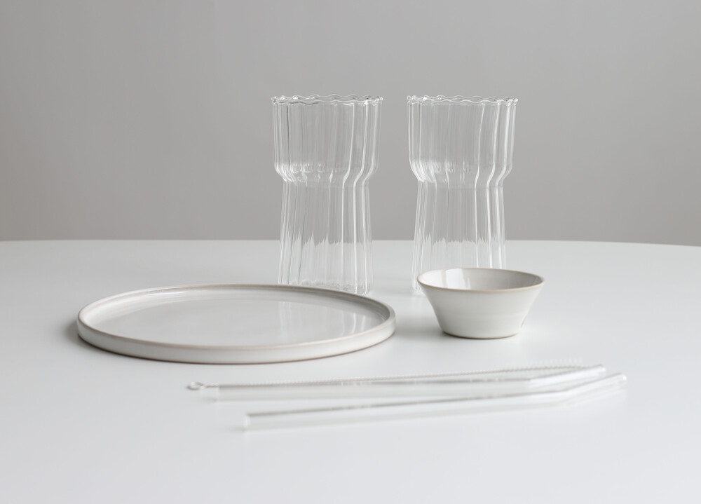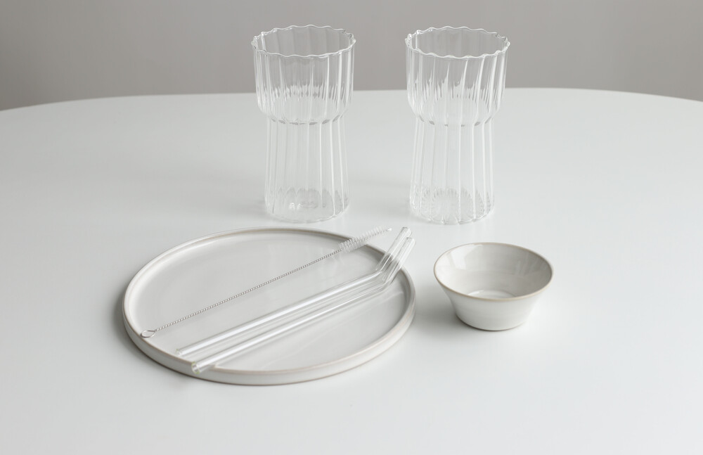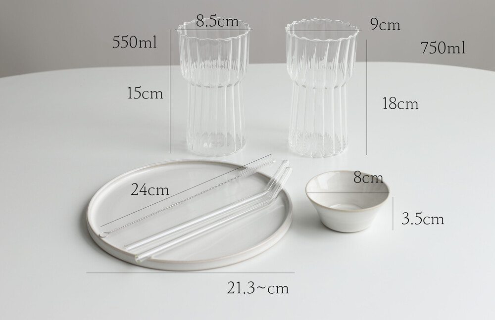 구성 : 핸드메이드우리도자기 메인평접시1P, 소스볼1P,내열유리잔2P(550ml,750ml선택), 유리빨대2P,빨대세척솔1P