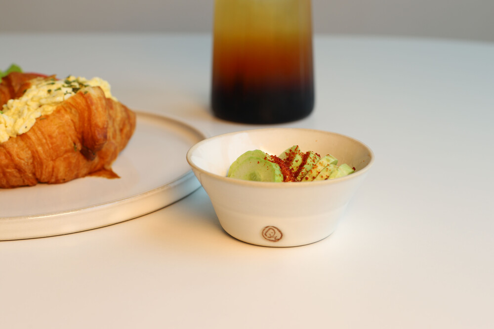 디저트 담기 좋은 깔끔하고 세련된 수공예 우리도자기 평접시와 쨈이나 피클을 담을 수 있는 소스볼이에요