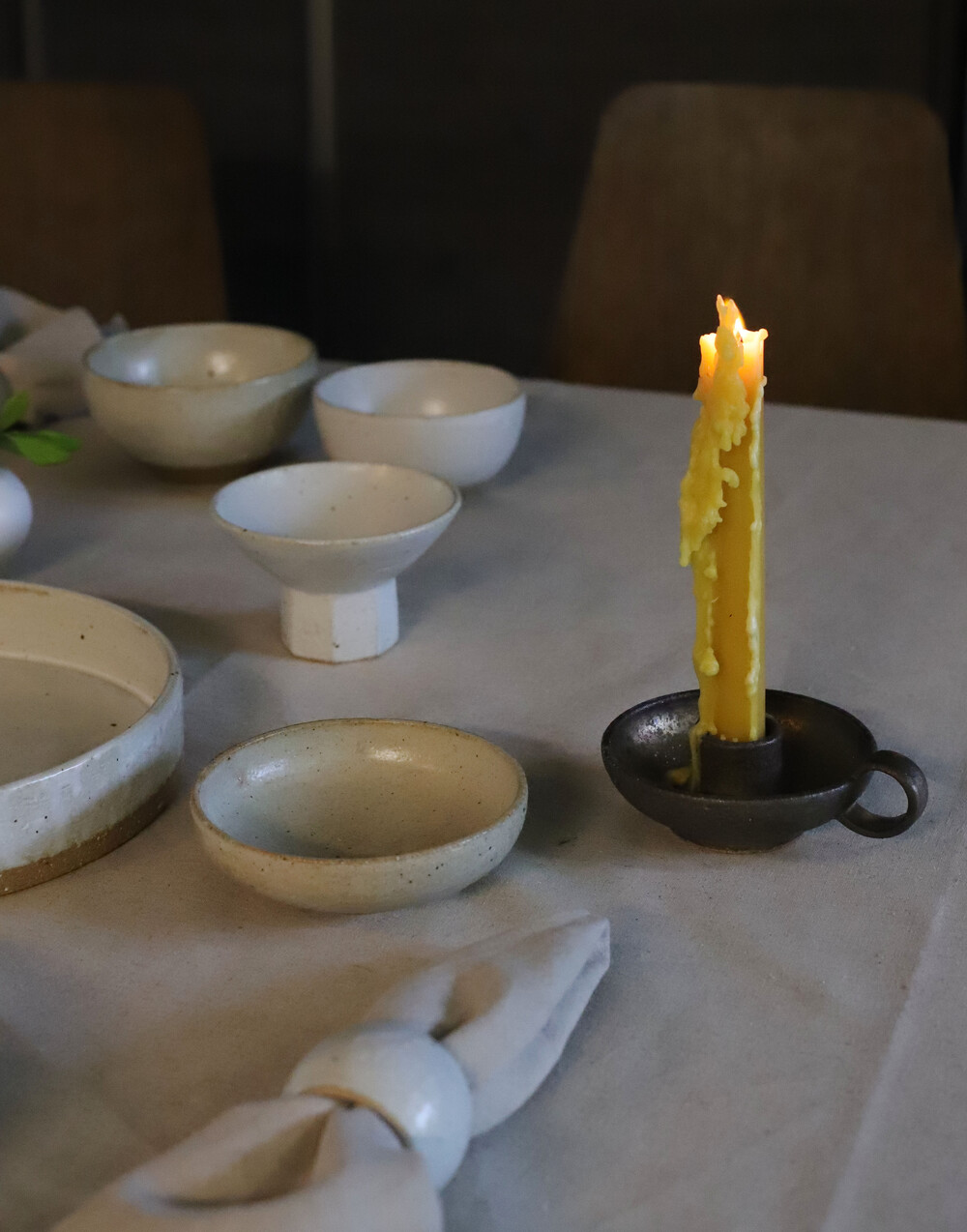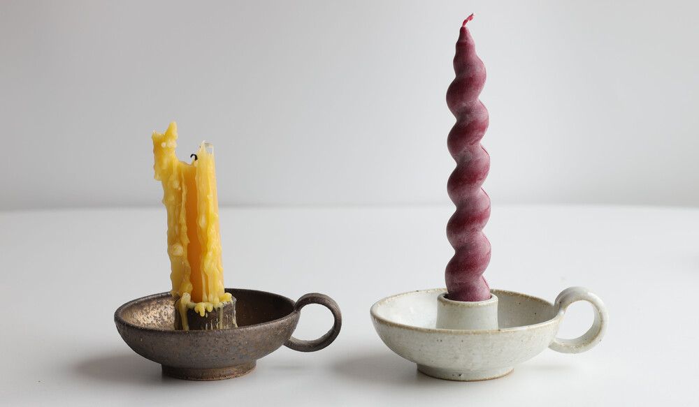 은은한 불빛이 가장 아름답게 머무는 형태, 진달래의꿈에서 손으로 빚은 도자기 촛대입니다.
