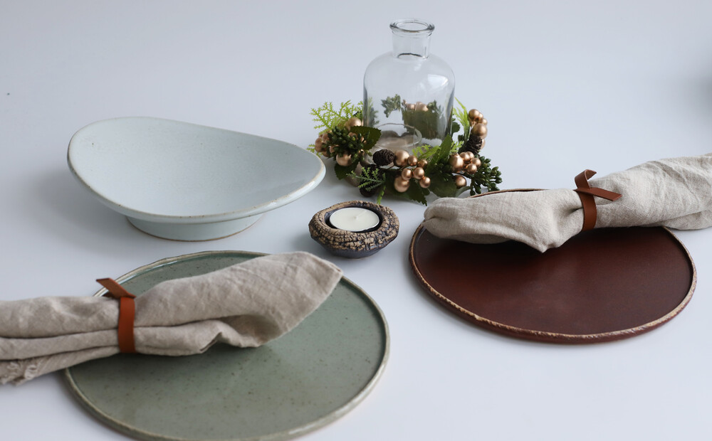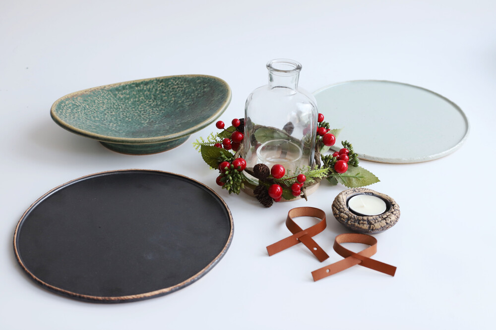 B타입: 스테이크접시 흰색,검정색 2p,타원형굽접시 녹색1p, 빈티지캔들워머1p,우드캔들1p,레드리스1p,천연소가죽 냅킨링 2p