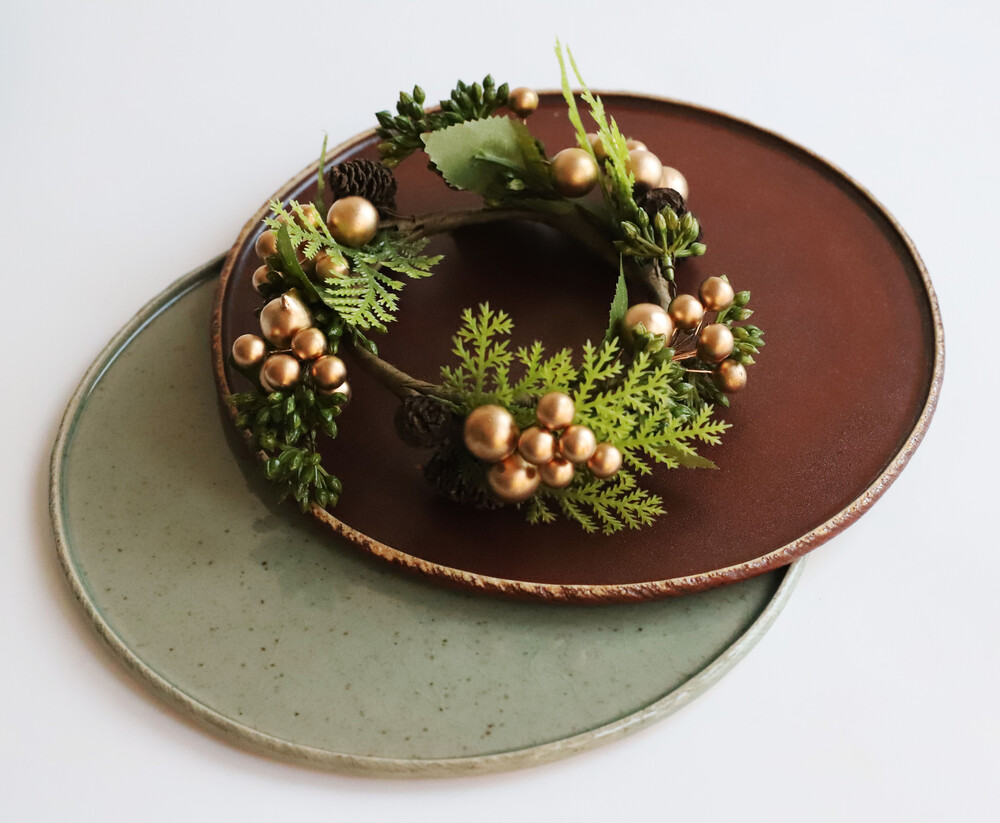 A타입: 스테이크접시 와인색,민트색 2p.타원형굽접시 흰색1p, 빈티지캔들워머1p,우드캔들1p,골드리스1p,천연소가죽 냅킨링2p