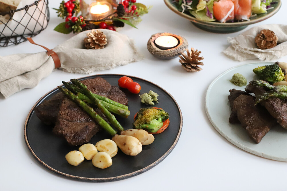스테이크 접시 2p와 가장 인기높은 타원형굽접시로 구성되어있어요