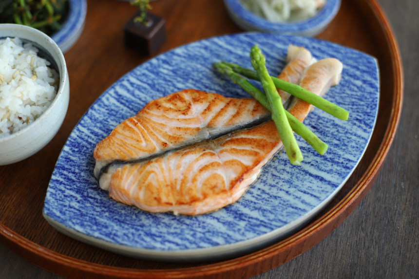 푸른색 접시에 연어를 올렸더니 자체가 예술이지요