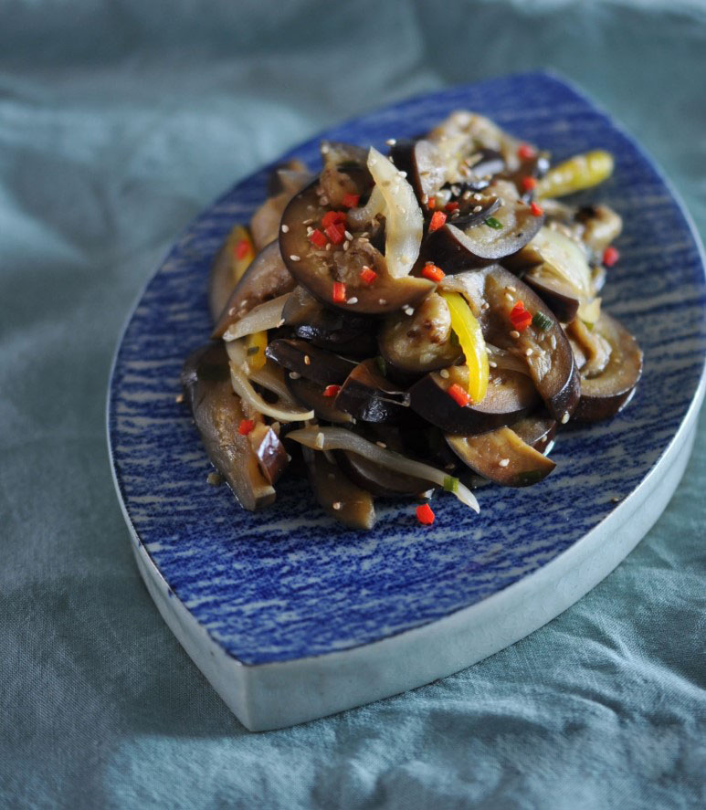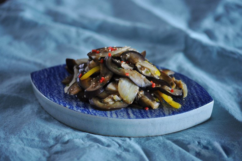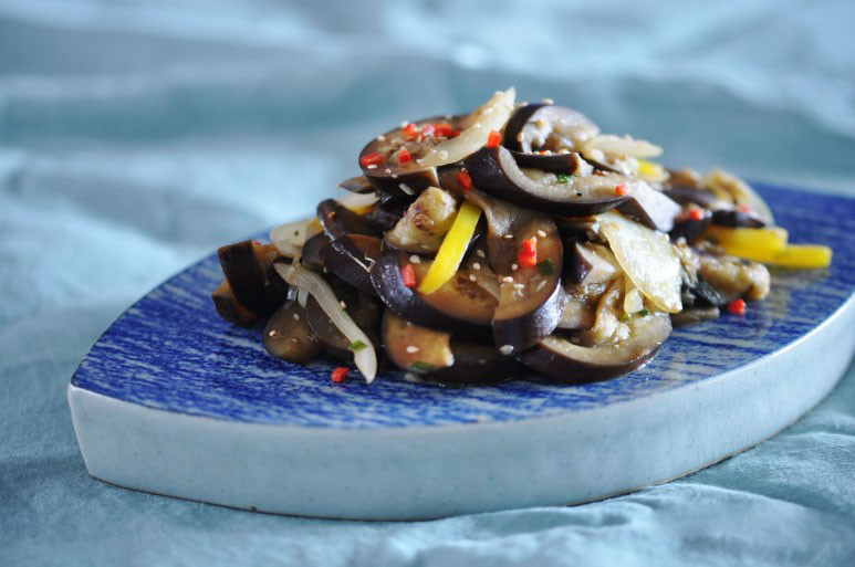그 흔한 가지볶음을 올려도 고급 레스토랑 느낌이에요