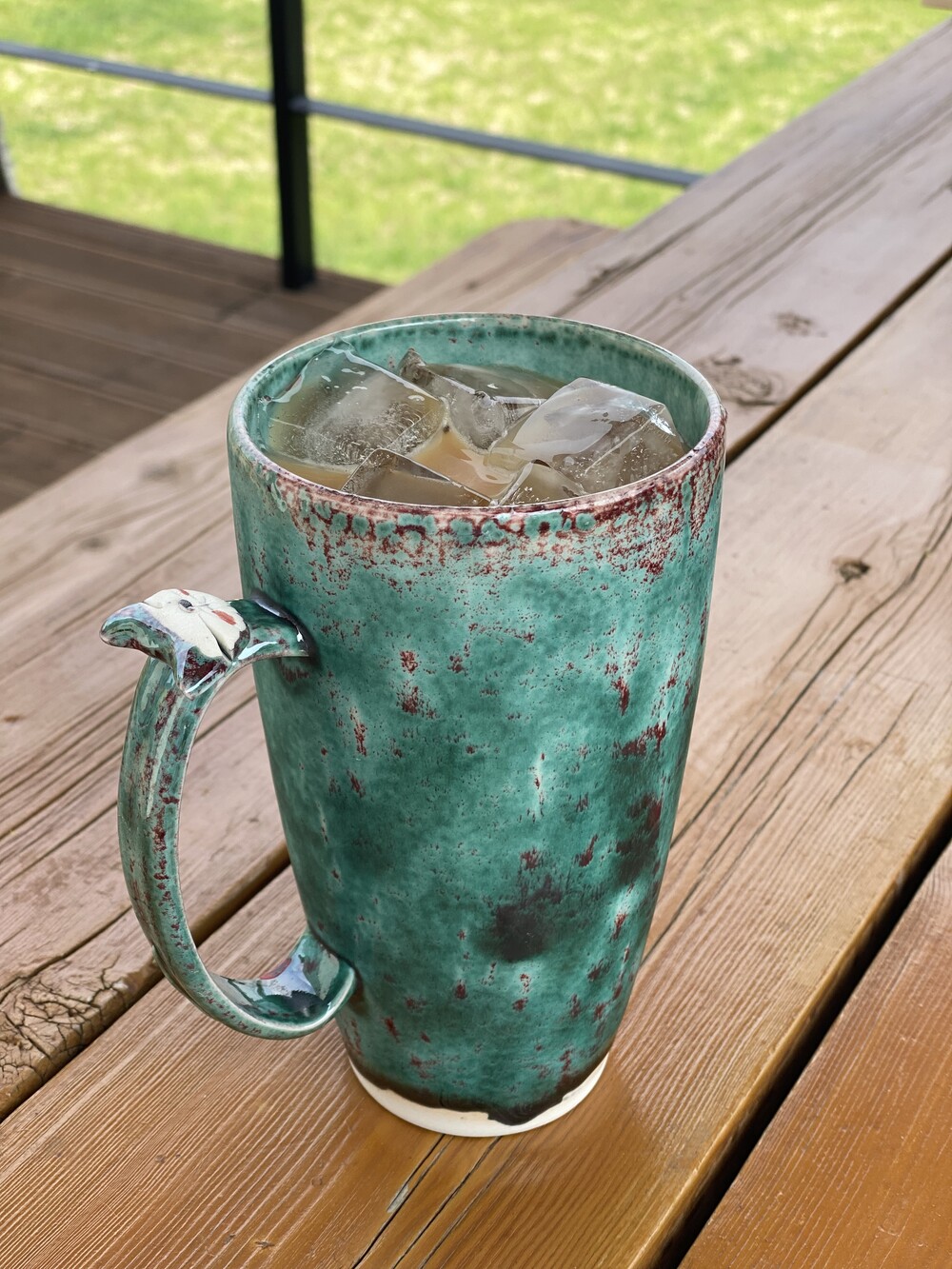 100% 손으로 빚어 만든 롱 아이스커피잔입니다.