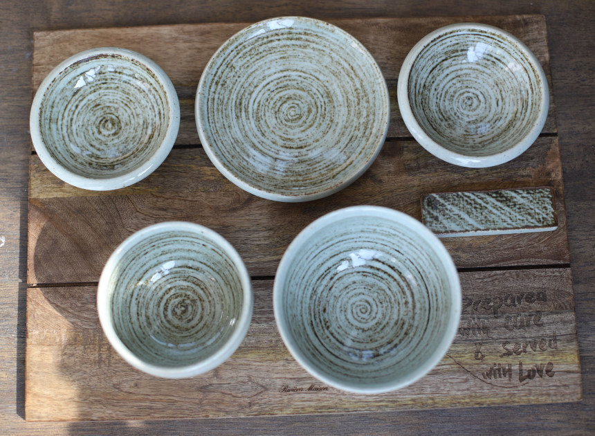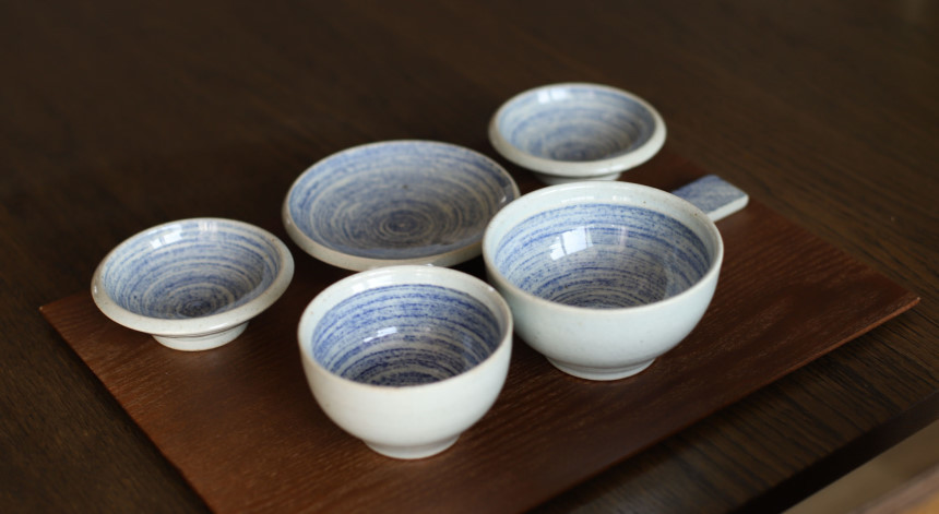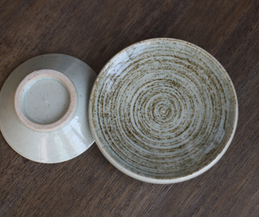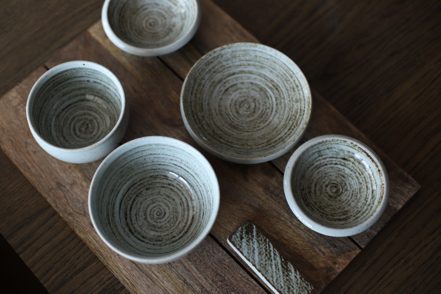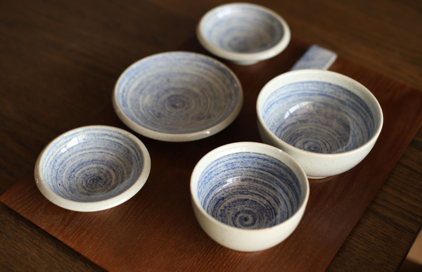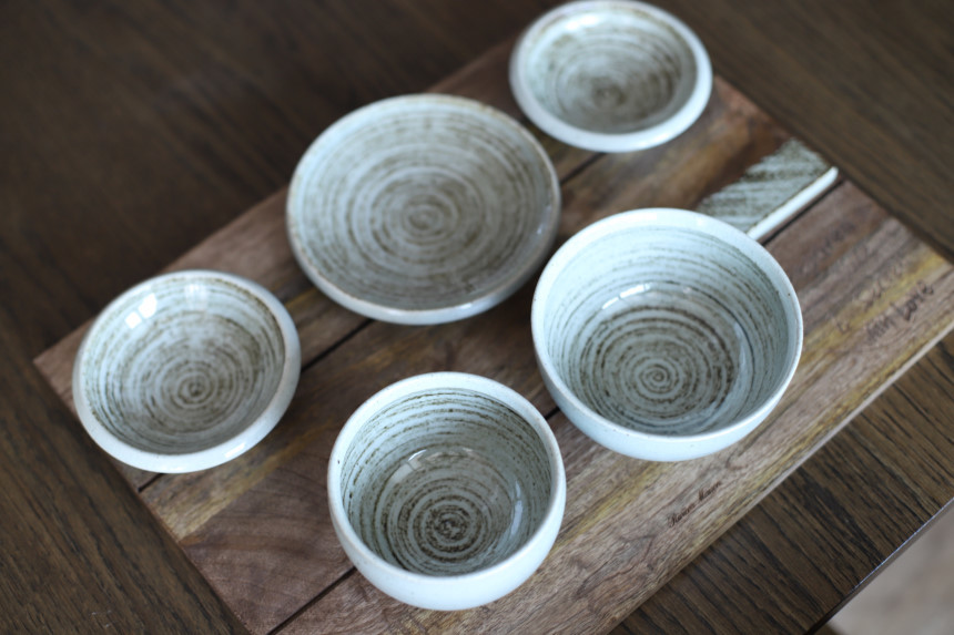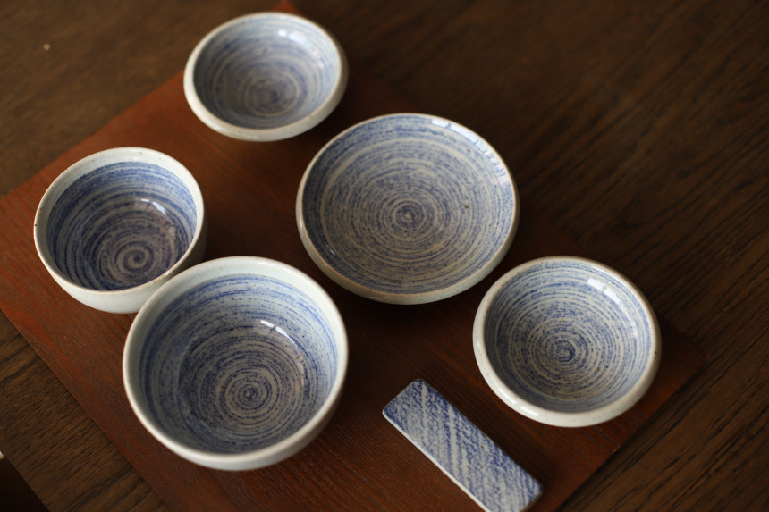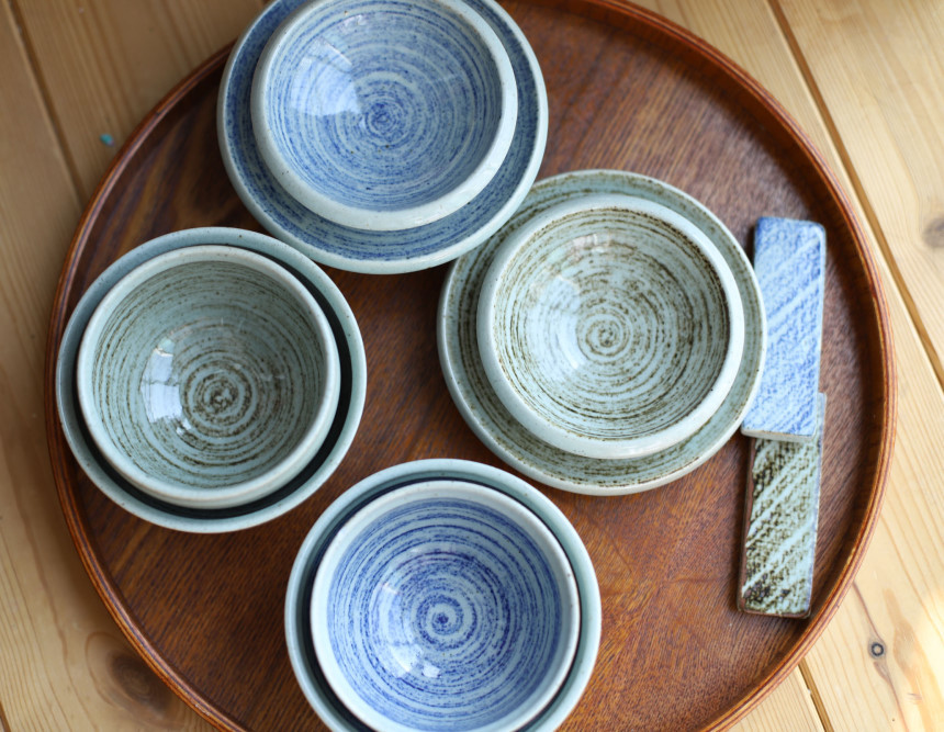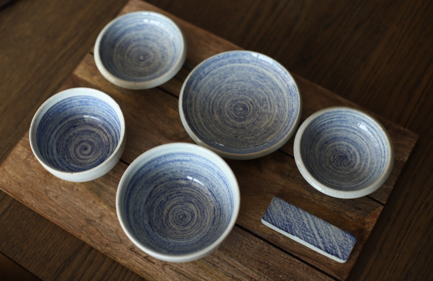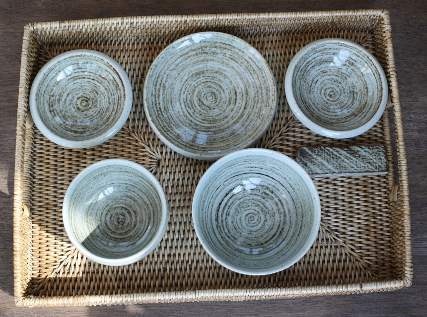 밥그릇,국그릇,찬기2,평찬기1,수저받침1 총6P 밥그릇 : 10,3cm 높이 6.8cm 국그릇 : 12.5cm 7cm 찬기 :11cm 평찬기:14cm 수저받침: 10cm (핸드메이드 특성상 약간의 오차가 있을수 있습니다)