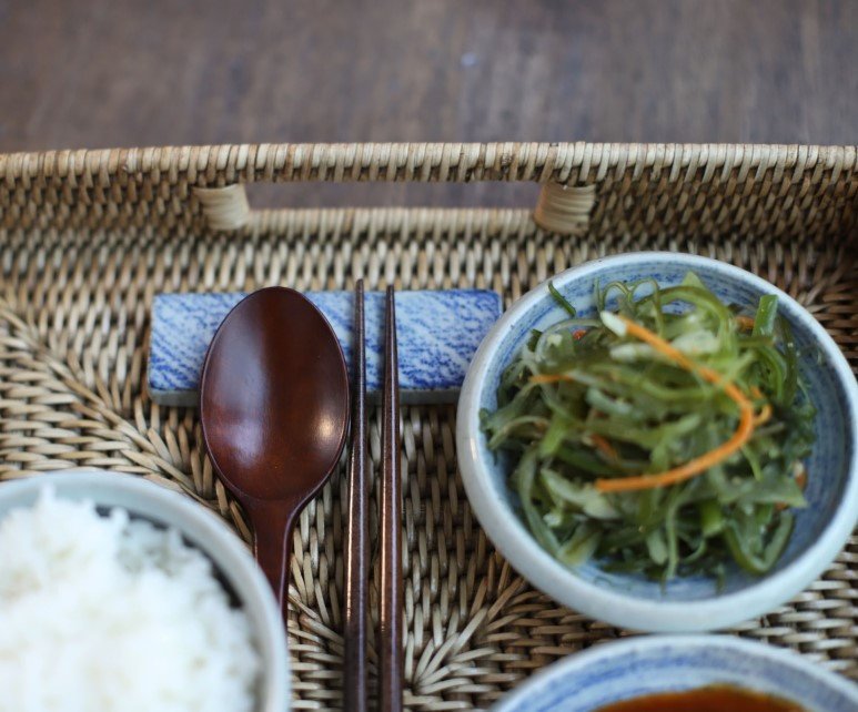 "이제 와 생각해보니 밥은 ‘예의’였던 것 같습니다. 단순히 영양소나 허기를 달래는 음식물의 개념이 아니라, 먹는 태도와 마음, 만드는 정성과 배부름을 대하는 자세까지 모두가 내 몸을 이루는 하나하나였던 것 같아요. 급하게 먹은 밥은 온몸에 다급함을 채워 넣어요. 다급함으로 찐 살과 근육은 지워지지 않는 습관으로 남더라고요(그래서 엄청나게 안 빠지기도 하고). 요즘이라고 해서 밥을 꼬박꼬박 챙기는 건 아니지만, 적어도 한 끼를 먹더라도 나름의 구색을 갖추려고 노력은 하는 편입니다. 그래서 아카시아 나무로 만들어진 1인 가정식 식기 세트를 샀지요. 숟가락은 작은 걸로, 젓가락은 예쁜 걸로. 따뜻한 밥과 맛깔난 반찬을 꼭꼭 씹어 삼키는 게 중요해요. 적어도 한 끼라도. 내 몸을 따뜻함으로 채우는 시간이니까요.