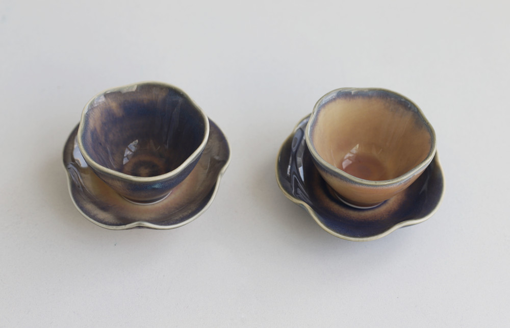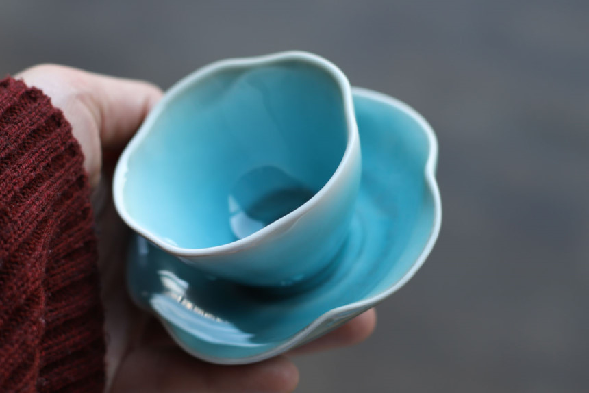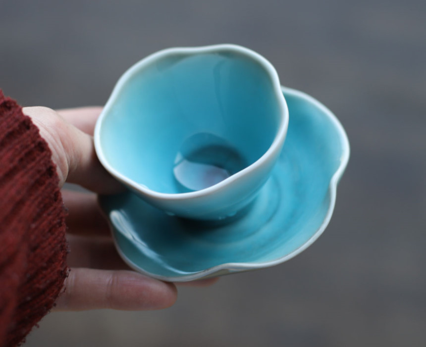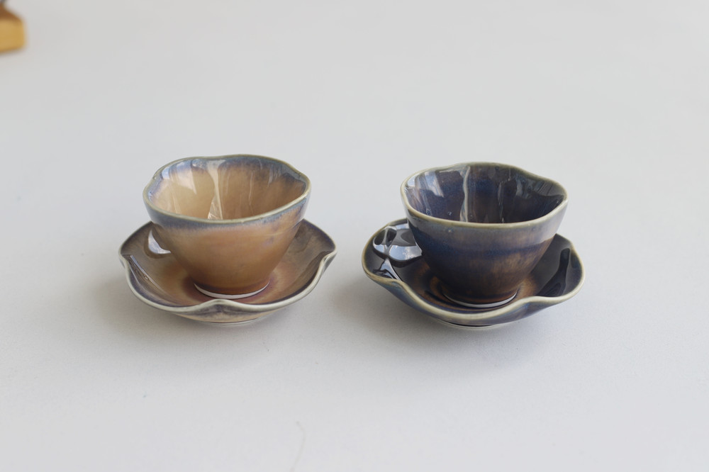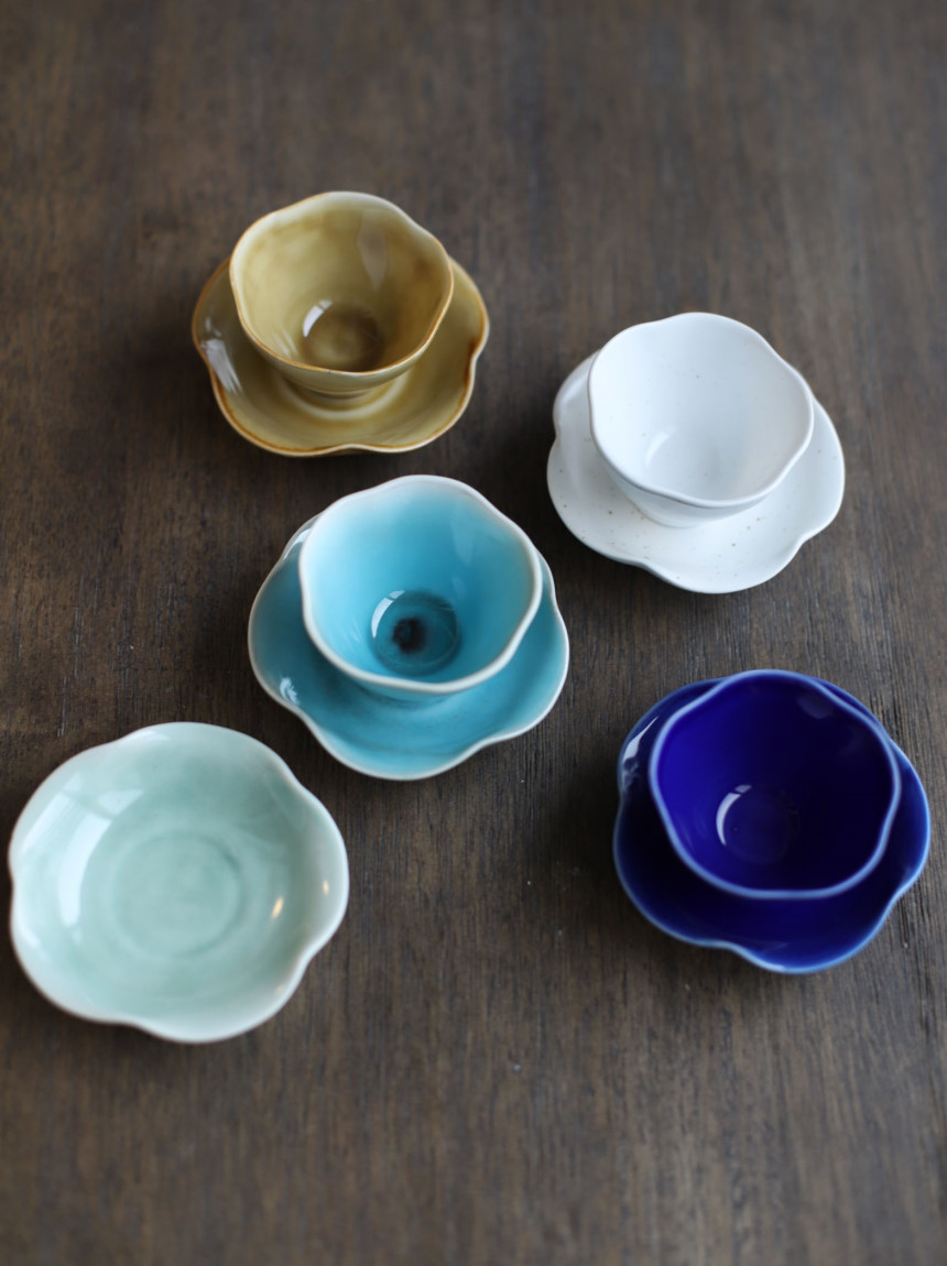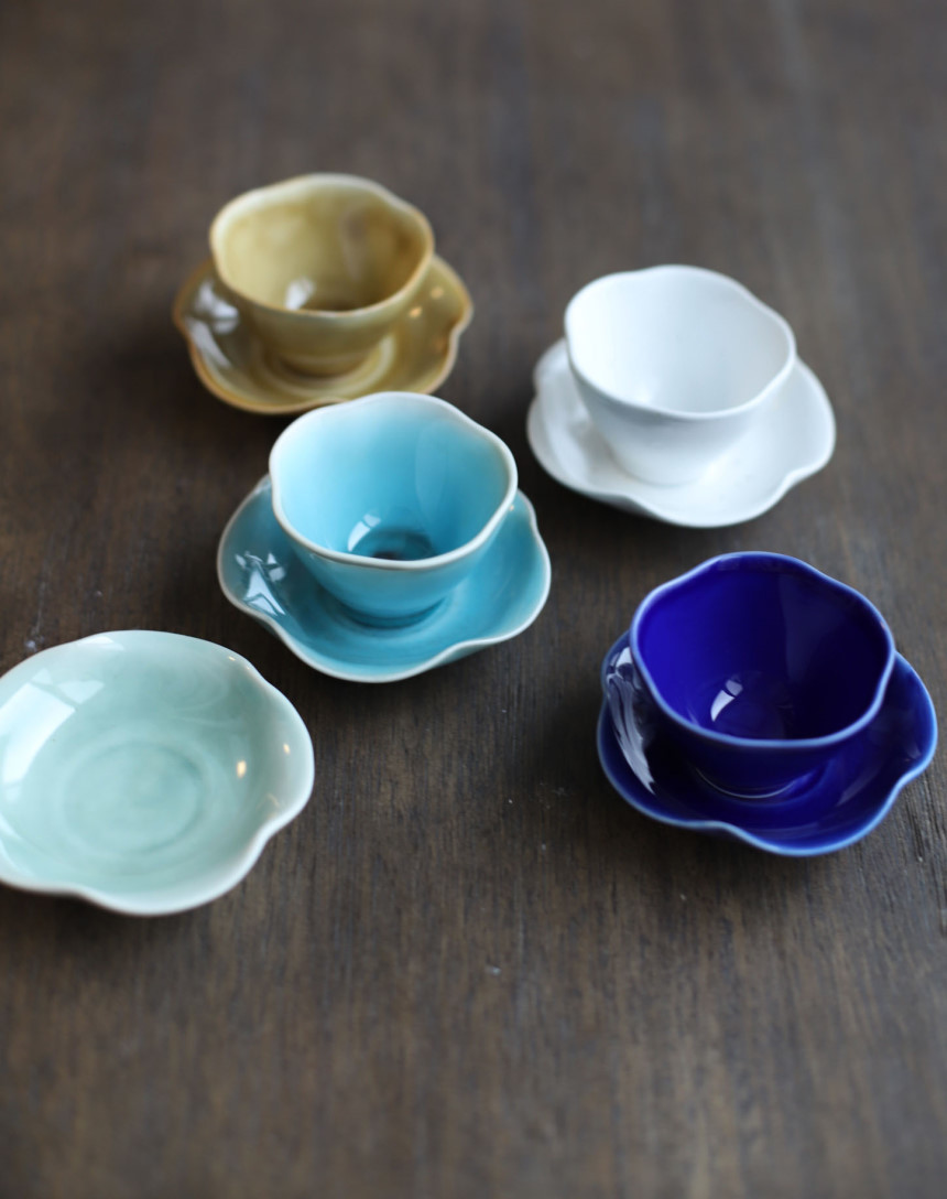잔,받침을 꽃모양으로 성형하여 여성스럽습니다.