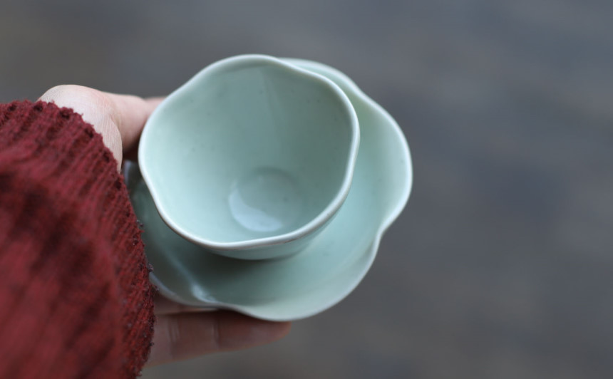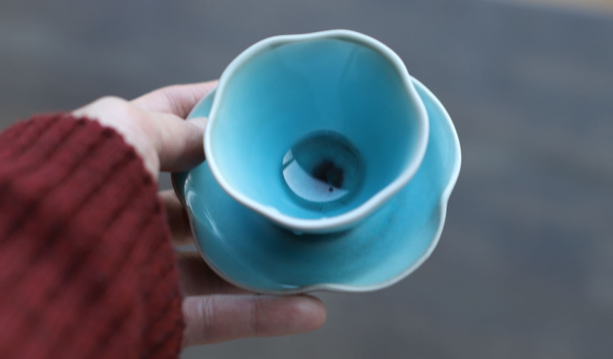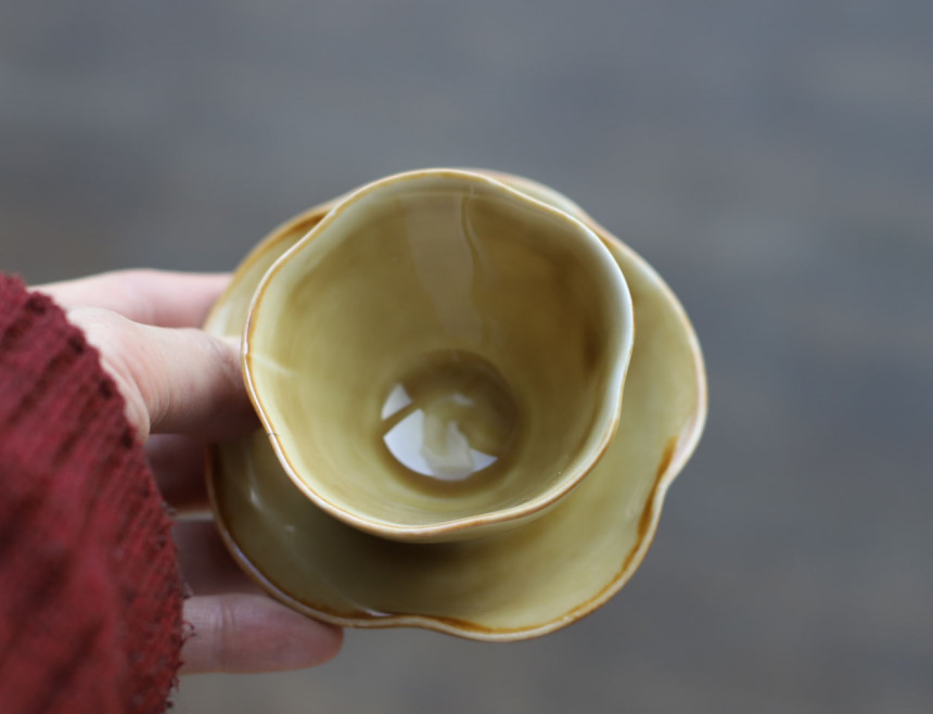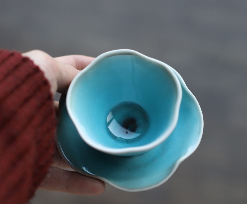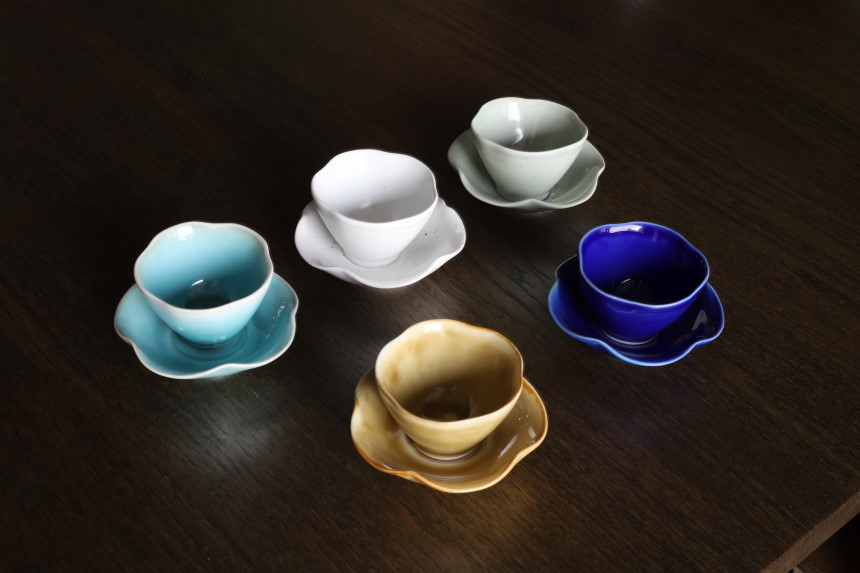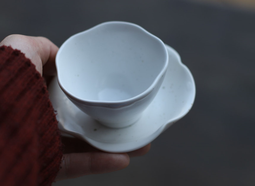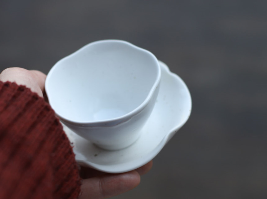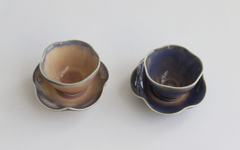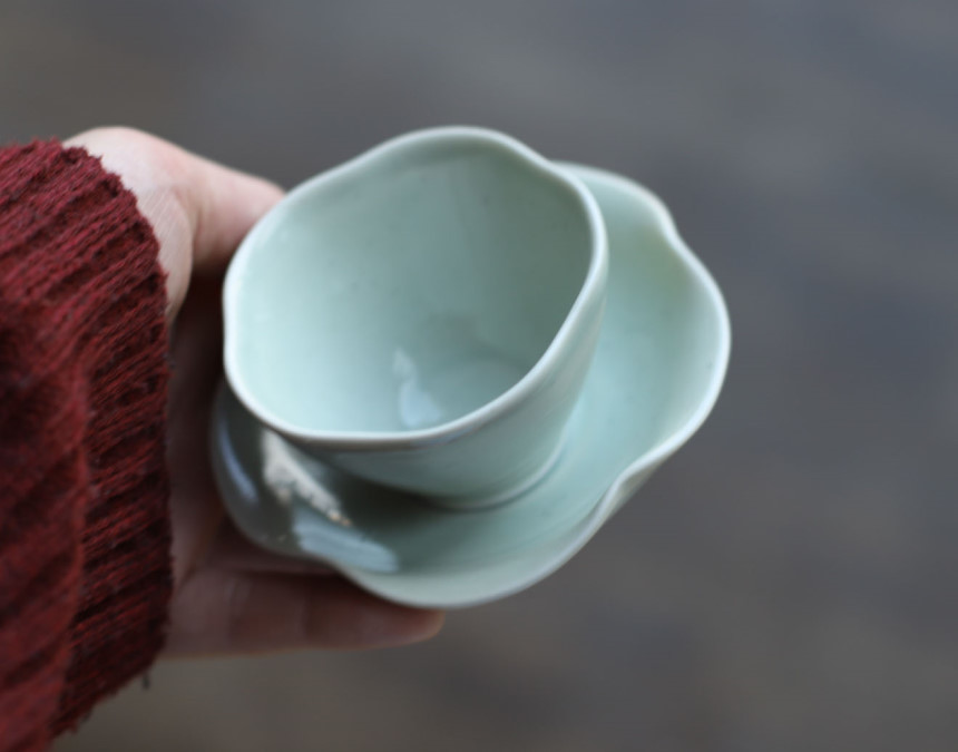 잔,받침을 꽃모양으로 성형하여 여성스럽습니다.