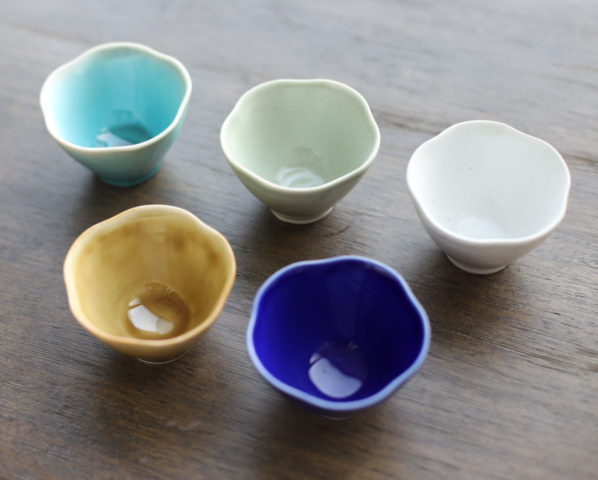 색이 너무나 예쁜 꽃오색 소주잔, 찻잔 입니다.