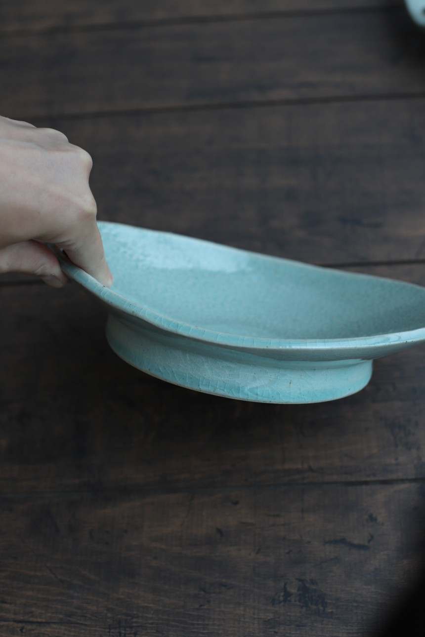 타원형으로 생겨 기계적이지 않는 멋스러움을 자랑하는 굽접시입니다