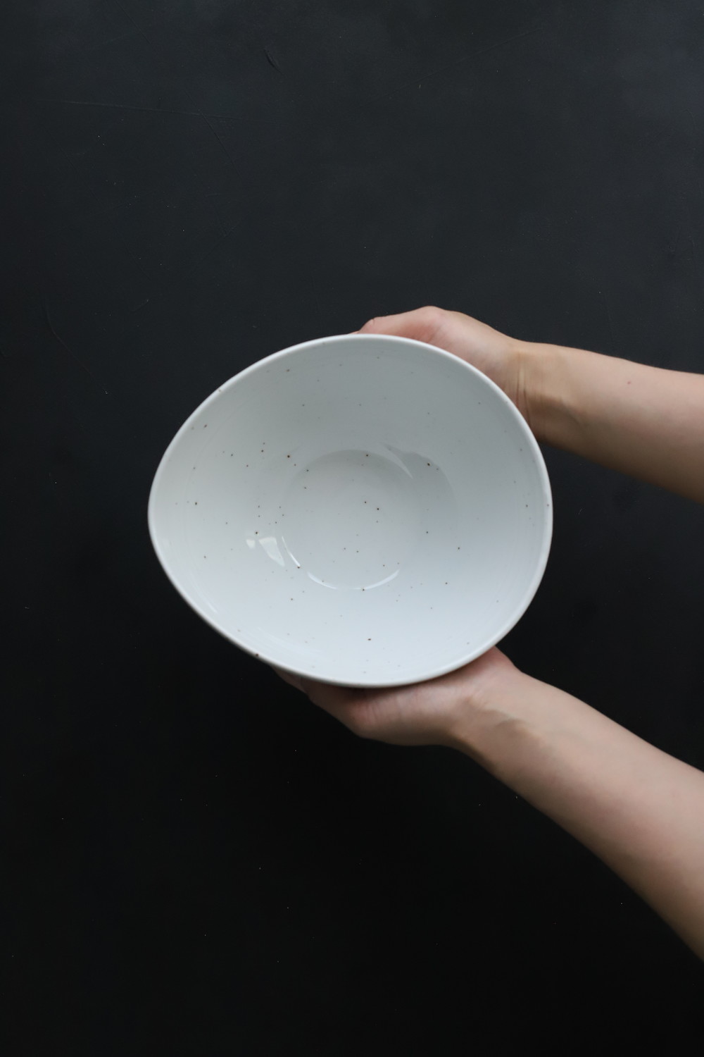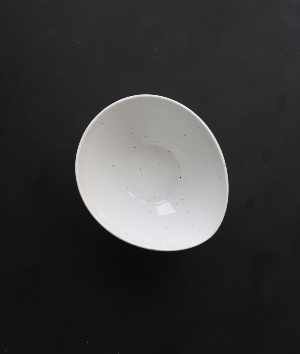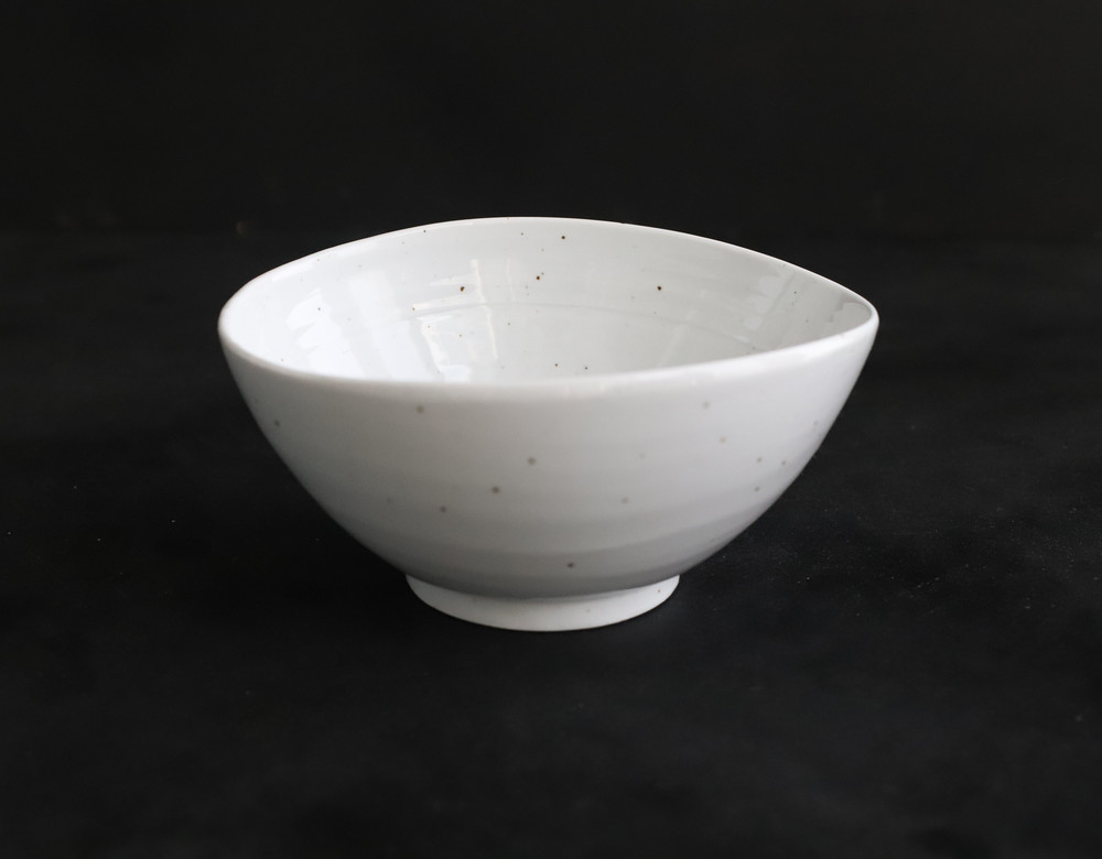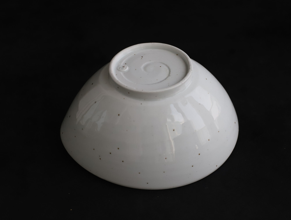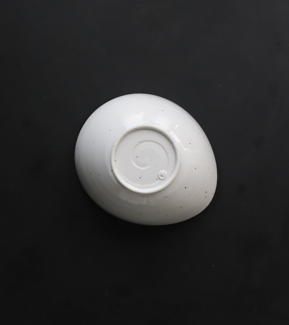 하얀그릇에 광. 핸드메이드 도자기의 특성을 살려주는 철분점이 이그릇의 매력입니다.
