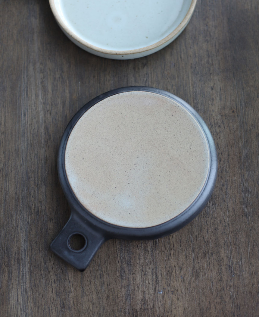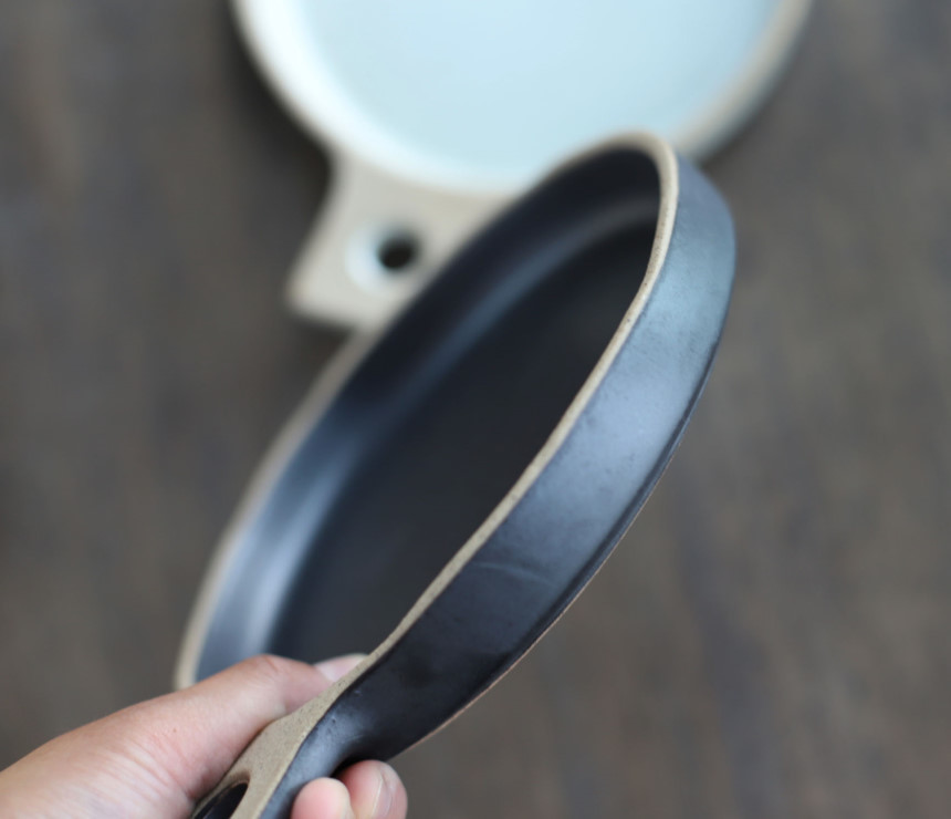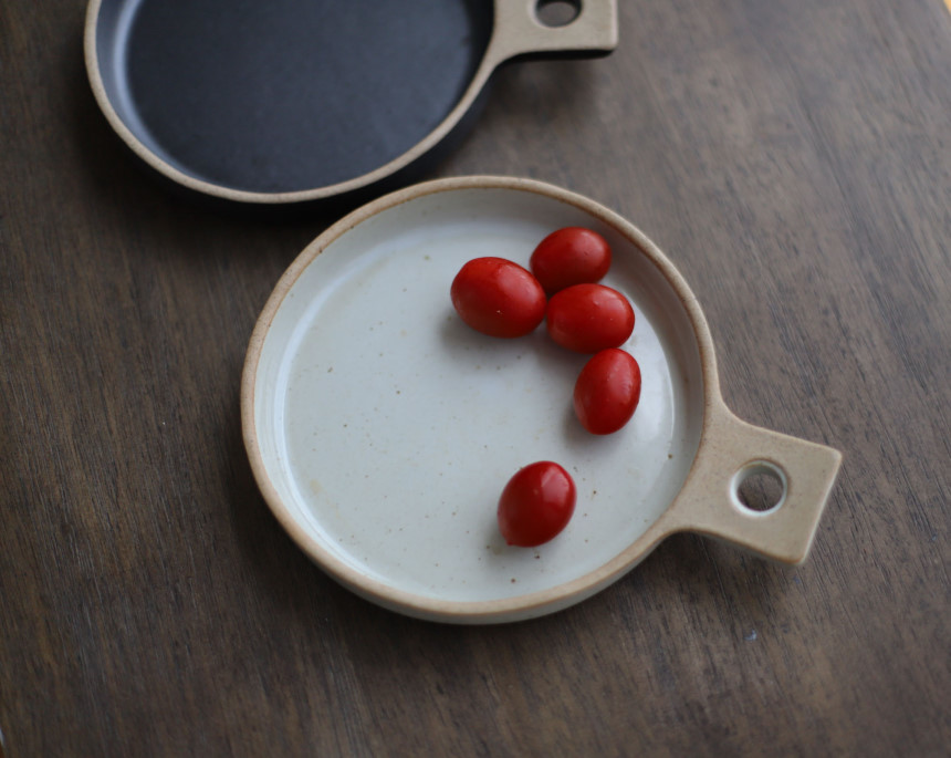 손잡이에 구멍이 나서 너무나 귀여운 손잡이팬접시입니다 옮길때 손잡이만 쏙 들어 옮길수 있어서 뜨거운음식을 담아도 쉽게 옮길수 있답니다 그렇게 많이 크지도 작지도 않은 사이즈라 일반 가정에서 가장 많이 쓰이는 크기입니다