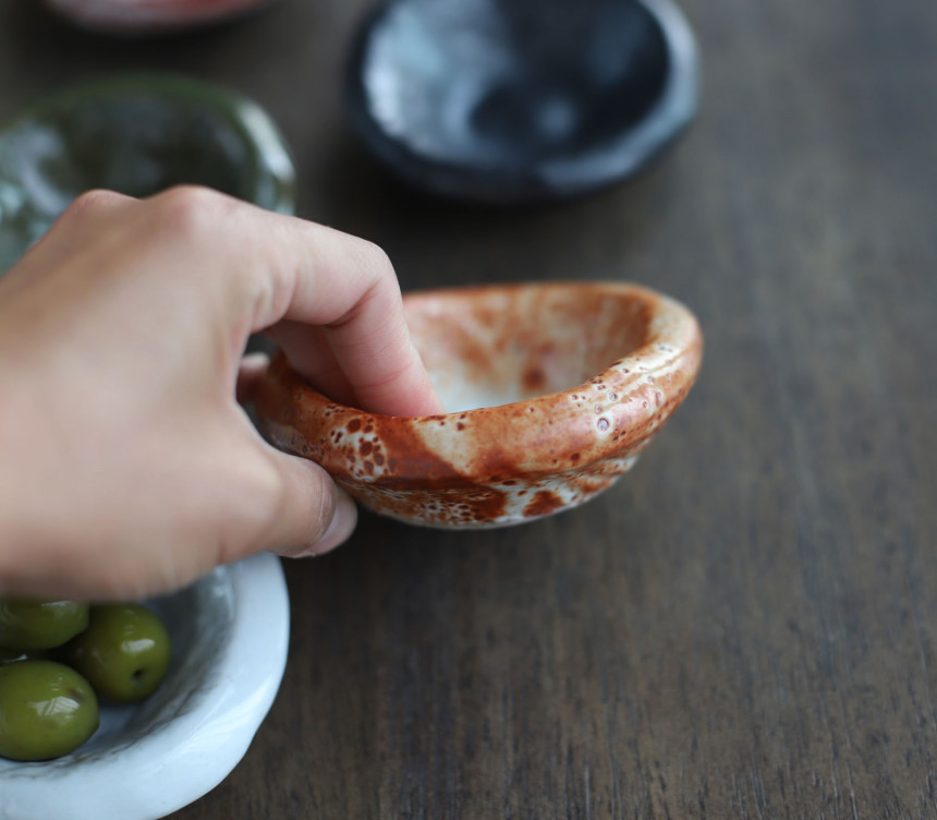 손으로 빚은 , 쪼물쪼물 너무 예쁘게 귀엽게 생긴 5가지 색상 1인찬기 입니다 종지로 쓰셔도 되구요 ! 사이즈는 자로 꼭 확인해주세요 ^^