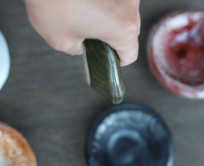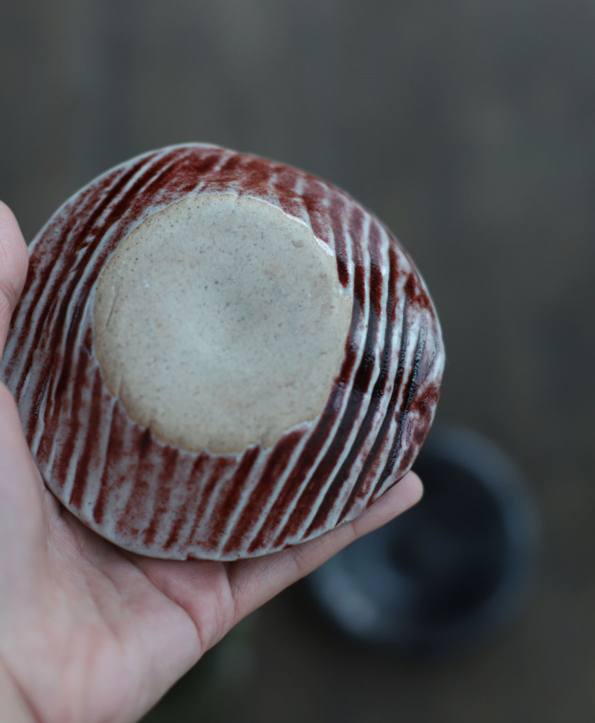 뒷면은 유약처리를 하지 않았습니다 미끄러지지않게요 , 식탁에 올려만 두면 기스가 나지않지만 쭉~~ 그릇을 당길때 긁으면 잔기스가 날수도 있어요. (식탁에 따라 다름)